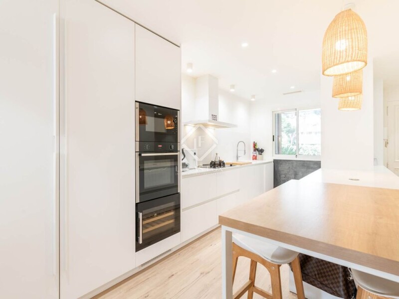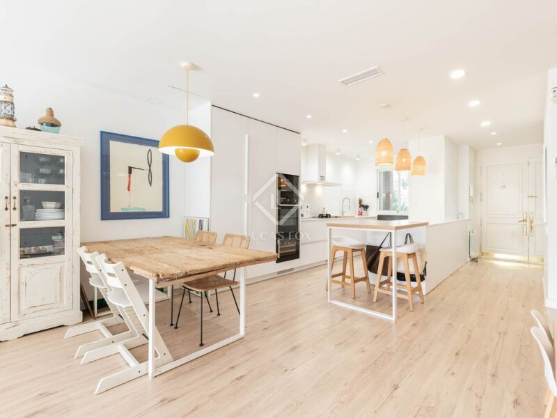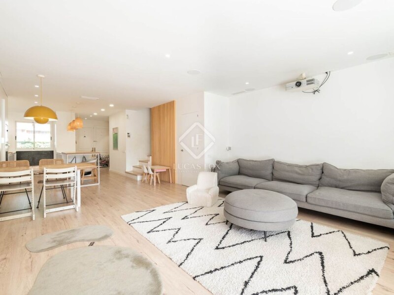 Beautiful semi-detached house, in a very exclusive residential area of Gavà Mar, a few metres from the beach, in a very well-kept residential area with surveillance. The 3-storey house is charming and was built in 1989, although it has just been completely renovated less than a year ago. It has been given a modern and minimalist touch, which makes it very comfortable. We enter the house through a stately entrance that opens onto a very wide space that runs through the entire house. This space houses the open-plan day area, with an open kitchen and a living-dining room with access to the terrace with its garden, its summer chill-out area and barbecue. This same garden has direct access to the large community pool surrounded by a garden area. This floor is completed with a guest toilet. On the first floor we have the night area with a bedroom with a private bathroom with a bathtub and access to the balcony, a huge bedroom that can be divided into two smaller ones, a complete bathroom and a small wardrobe. Higher up, we have the multipurpose loft that is currently used as a music and library space, with storage spaces and access to a small balcony. The house also has a lower ground floor, with a garage for two cars (there are also two more places outside next to the entrance), a laundry area, a double bedroom. The house includes mains gas heating in all rooms, air conditioning and top quality general finishes. The communal outdoor area is very pleasant with green spaces with well-kept plants, a children's play area and a swimming pool. It is a tastefully renovated townhouse and is perfect for families looking for a primary or a second residence.