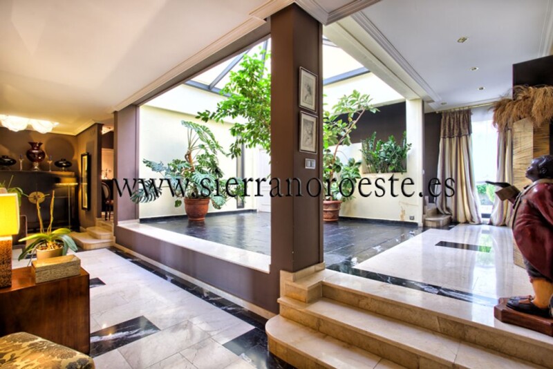 Spectacular designer villa in Torrelodones of 600 m2 on a plot of 2,300 meters. Luxury and comfort in a very bright house, with large spaces and practically on one floor, except for 2 rooms with a living room and each with its own bathroom, which are on the first floor. On the ground floor is the suite with 2 bathrooms and dressing room, another bedroom with bathroom, living-dining room, kitchen with a modern island and top-of-the-range appliances, bright and very spacious, and a service area (bedroom and bathroom). Armored and automatic blinds, thermal windows, fireplace in the living room and main room, underfloor heating and air conditioning in the bedrooms. Magnificent porch that is accessed through the living room, the master suite and the kitchen. Marble and parquet floors in the bedrooms. Nice views.