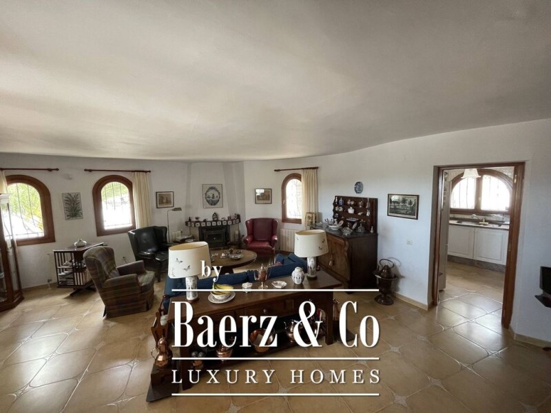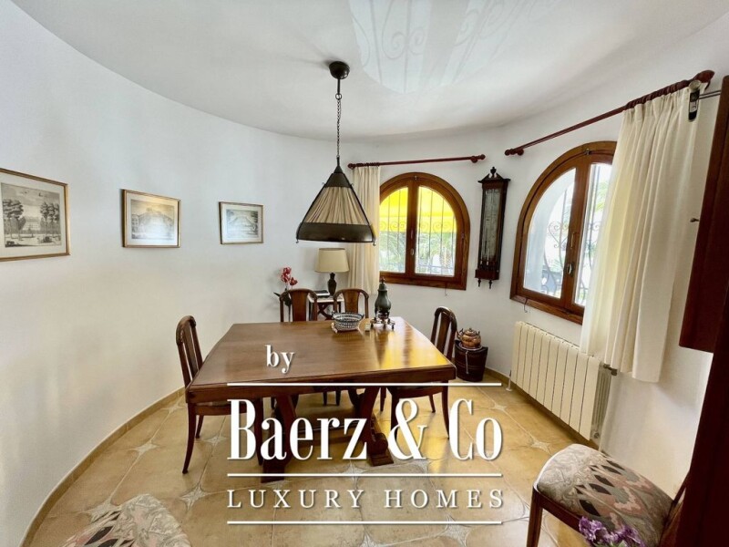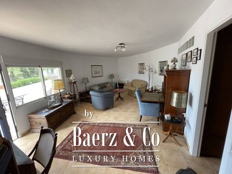 Beautiful Ibizan style villa from 1975 designed by the architect Professor de la Rey, and completely restored in 2006. The villa is built on a plot of 1983 meters in the shape of a kidney. It has an area of 180m2 per floor. The main floor consists of entrance, large living room with fireplace, dining room, kitchen, hallway, three bedrooms with fitted wardrobes, and two bathrooms (one en suite) Semi-basement floor, living room, two large bedrooms, kitchen, bathroom. .