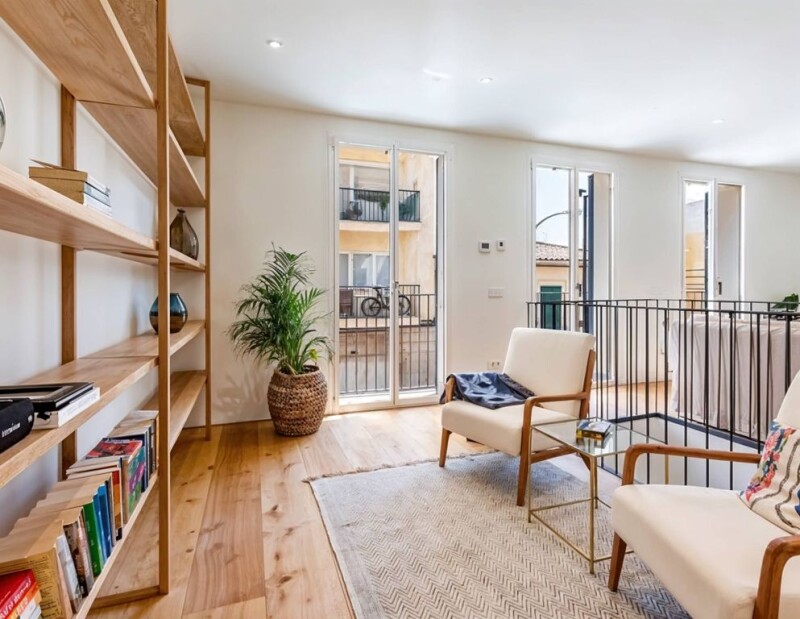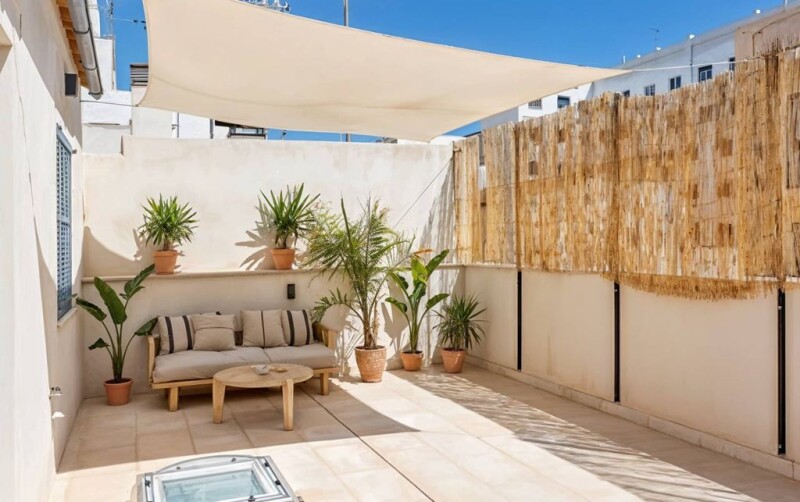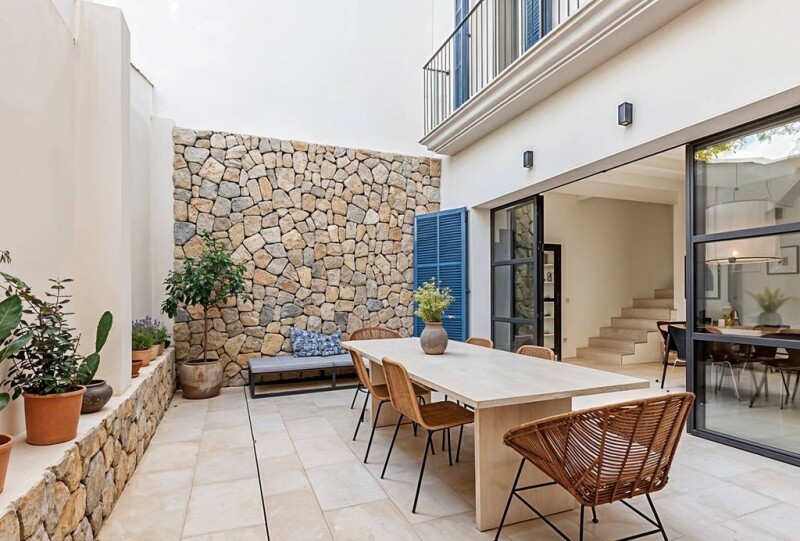 In the peaceful neighborhood of Santa Catalina, close to the prestigious shopping street Jaime III and the port, this elegant and modern townhouse is located, which has an interior patio and a rooftop terrace. The property is distributed over four floors: Ground floor: It has a spacious kitchen with dining area and access to a bright patio, as well as a small room and a bathroom with shower. First floor: It houses a bright living room with fireplace, another dining area, and the laundry room. Second floor: It has four bedrooms, three of them with ensuite bathroom, and access to a small terrace. The fourth bedroom is used as an office. Fourth floor: The master bedroom is located, which has an ensuite bathroom with open concept and access to the rooftop terrace. Additional features: underfloor heating, hot/cold air conditioning, wooden floors in bedrooms and living rooms, natural stone in bathrooms, and a parking space. Energy certification: EEC Category A Class C.