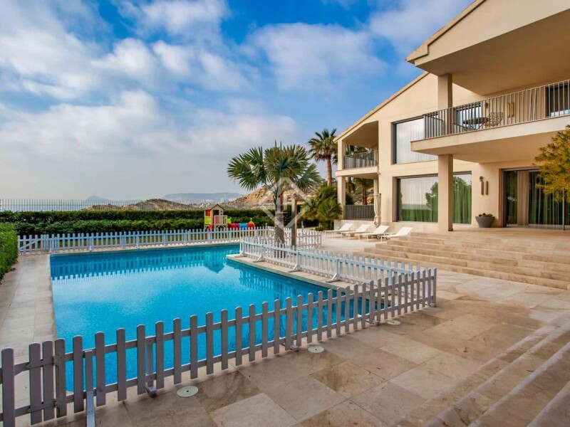 This majestic seafront villa is set in the tranquility of Cabo las Huertas, a picturesque headland and the most exclusive residential area of Alicante. This is a spectacular natural environment with uninterrupted sea views and perfect peace and privacy, but also easy access to the city centre. The villa has recently been renovated to an exceptional standard using the best materials. As well as overlooking the Mediterranean, the property has a large mature garden with palms, centennial ficus and fruit trees, lawns and flowers. With a lovely pool, terraces and balconies, it is made to enjoy the outdoor lifestyle but combines this with truly wonderful indoor spaces that take in the views from just about every room. The poolside porch is the ideal place to relax and take a break from the heat of the sun, or enjoy al fresco dining with friends as the sun goes down. This is made even easier with the barbecue area and fully equipped summer kitchen, while the south-facing aspect ensures maximum sunshine just about every day. The house is arranged over three floors, all connected by a majestic staircase and flooded with natural light. The ground floor has a very large, bright living room overlooking the garden and sea, with large doors opening onto a covered terrace. The impressive kitchen has a breakfast bar and dining room and enjoys access to the terrace and barbecue area. This floor also has a laundry and utility room, and a bedroom suite that has terrace access. Upstairs, 4 further suites each offer their own unique take on luxurious living and stylish finishes, and a further bedroom is perfect for use as an office, with its own terrace overlooking the pool and the sea. The basement has a fully equipped gym with Techogym machines, served by two large changing rooms. This level also has a 3-car garage and a large storage room. This is a magnificent house in a privileged position, offered in perfect condition and with every luxury including smarthome technology, bespoke lighting and audiovisual systems, and hot and cold air conditioning to ensure year-round comfort.