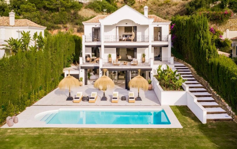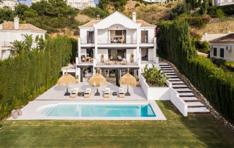 A truly brilliant villa, located in the exclusive urbanization of Puerto Del Capitán only a few minutes drive from Benahavís, Marbella, and Puerto Banús. The community is central to amenities and is also surrounded by prestigious golf courses including Los Arqueros, La Quinta, El Higueral, Guadalmina, and Los Naranjos. This stunning contemporary six-bedroom villa recently enjoyed a complete refurbishment to the highest of luxury standards. It features a beautiful arrangement of landscaped design with a tropical garden, brand new Italian porcelain terraces, external security and illumination system, large recreational lawn area, and a new reformed swimming pool. The interior areas are fully furnished with chic Scandinavian-inspired decor with glass features, while the architecture incorporates touches of Andalusian essence for extra character. Each interior space is bright and open, allowing natural light to flow throughout the property. The kitchen is brand new with exquisite finishes, along with bathrooms, wardrobes, doors, and the gymnasium. Features including engineered wood flooring, electrical and LED lighting system, and heat & cool air conditioning system are present for optimal comfort. PLOT 941M² | SURFACE 420M² | BEDROOMS 6 | BATHROOMS 6 A SKI N G PRICE €2, 9 9 5, 0 0 0 (I N CL UDI N G F U R N IT U RE.