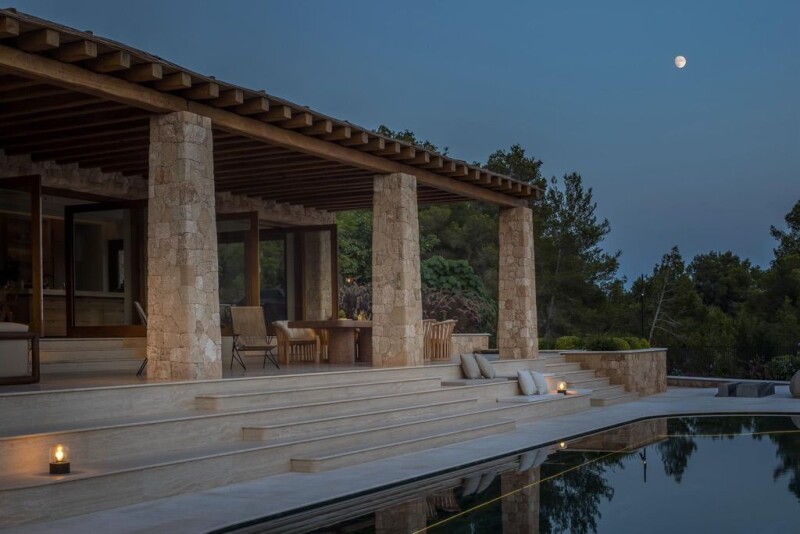 A once in a lifetime achievement in design and quality, created by master architects, this triumph in craftsmanship occupies a huge 85.000m2 private plot in the idyllic countryside just a 5-minute drive from the picturesque bay of Cala Mastella and close to the charming village of San Carlos in Ibiza’s most scenic, north-eastern region. Combining the finest natural materials and local influences with exquisite contemporary minimalism, this beautiful stone-built property measures 600m2 and provides six elegant bedroom suites each with its own bathroom, including two master suites with walk-in wardrobes and terraces. A luminous entrance hall flows seamlessly to an expansive living space incorporating a state-of-the-art kitchen and opening onto large terraces for dining and luxuriating in the spectacular beauty of the gardens, pool, and surrounding countryside. Nature takes over from here providing landscapes of majestic, ancient Sabina trees stretching toward the azure blue Mediterranean. Featuring automated systems that silently and instantly anticipate every need, this truly exceptional villa is fitted with an indoor/outdoor sound system, subtle hidden spotlights, and a security system with alarm and 360-degree camera coverage. Automated glass doors lead to a generous external dining terrace where entertaining friends, against the backdrop of the elegant pine forests and lounging while taking in distant views of the sea will prove an uplifting experience for hosts and guests alike. A stunning Lapponia Verde heated marble pool invites revelers to swim and refresh after a long day sunbathing, shopping at the nearby hippy market of Las Dalias in San Carlos or enjoying the various attractions and diverse nightlife of the capital, Ibiza town, a mere 35-minute drive away. A quiet haven of tranquility and captivating in its architectural flair, this once in a lifetime, fresh concept of a villa offers an abundance of style and space to create unforgettable memories going forward. PROPERTY AMENITIES Electricity Mains Air Conditioning Underfloor Heating Private Plot Large Plot Fitted Kitchen Modern Kitchen Beach Nearby Sunrise View Landscaped Gardens Internet WiFi Telephone Alarm Security System Parking Pool Terraces Shaded Terrace Covered Terrace Chill Out Area Fitted Wardrobes Outside Dining Utility Room Storage Restaurants Nearby Local Amenities Nearby Huge Rural Plot Heated Marble Pool Outstanding Panoramic Views First Quality Materials Quality Fixtures & Fittings Luxury Design & Styling Indoor/Outdoor Sound System Distant Sea Views Local Villages Nearby Multiple Terraces & Patios Tranquil Country Surroundings 2 Master Suite Bedrooms 2 Walk In Wardrobes.