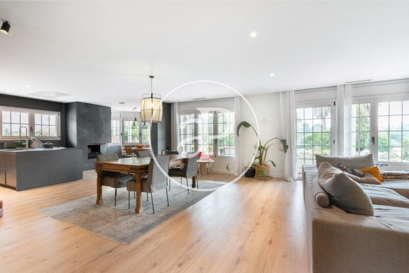 Located in a residential area of Valldoreix, in an exclusive and fantastic urbanization of 5 houses we find this wonderful townhouse of 641m² with a communal area of 5.289m² with gardens, barbecue area, swimming pool and playground, squash court, sauna, games room, locker room and gym. The property consists of three floors, on the main floor there is a large entrance hall leading to a spacious and bright living-dining room with open kitchen recently renovated fully equipped with access to the porch. On the ground floor, there is also a bedroom, a bathroom and a utility room. On the second floor there are four bedrooms, one of them is the master suite with a nice dressing room and the other three share two bathrooms. The third floor is an attic with double height, where we find another master suite perfect for guests. Natural gas underfloor heating, two fireplaces in the living-dining room, high-end appliances, white lacquered carpentry, double glazed windows with thermal break, laminated parquet floors, fitted closets and alarm. Parking for four cars. Sant Cugat del Vallès, located in the Valles Occidental, is a town near Barcelona that retains the essence of a quiet village, but only 12 km from the city. It is chosen by many families who want to gain in quality of life due to its strategic location, large amount of green areas, parks and gardens and excellent communication by highway, Vallvidrera Tunnels or road with the Catalan capital. Most families live here and work in Barcelona, enjoying the advantages of living in a municipality that maintains traditions, a wide range of cultural and gastronomic offerings, popular festivals and at the same time enjoys prestigious international schools and universities. .