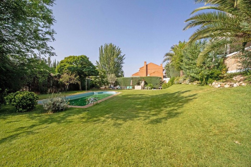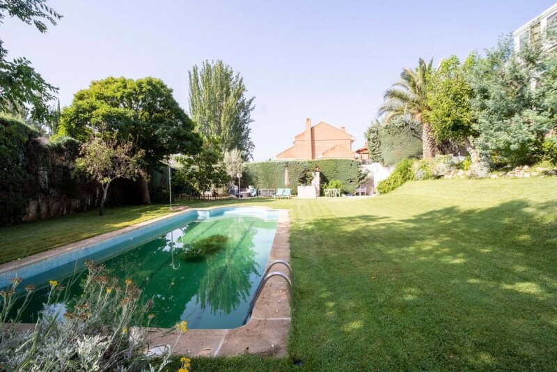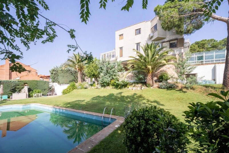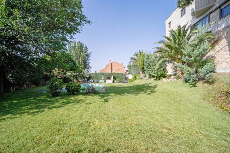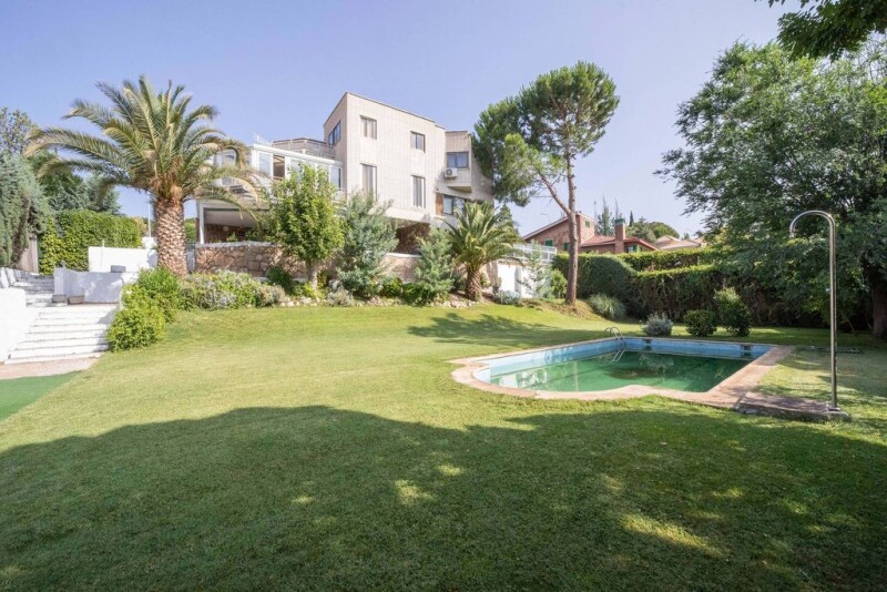 Villa located in the urbanization Santo Domingo, residential housing development located 28 km from Madrid center and 24 minutes from the Adolfo Suarez Airport. From Madrid center and 24 minutes from Adolfo Suarez Airport. Fantastic detached villa in the best location in the urbanization Santo Domingo. Spacious rooms, magnificent views and beautiful landscaped plot with pool and barbecue. A small update can turn it into a spectacular house. Ideal for family life and to invite friends. It is a perfect house for large families or for people (businessmen, diplomats) who need a house where to receive. Its layout and dimensions also allow the installation of offices or offices without intruding with residential spaces and even that different family units can live in the same space while maintaining their privacy. The building, with 645 m2 of floor space, has seven bedrooms and seven bathrooms, not counting the service quarters. It consists of three floors and a fully landscaped plot of more than 1600 m2, which houses a good size swimming pool, barbecue and gazebo or chill out area. The distribution is as follows: Main floor: Entrance hall, large living room on two levels with access to a covered and glazed terrace (with electric retractable roof for summer), office, second living room or living room, very spacious kitchen with office area and service bedroom with bathroom, guest toilet and three bedrooms. Two of them have en-suite bathrooms, while the third one is served by another attached bathroom. Second floor: It has independent access and houses a large master bedroom with en suite bathroom and dressing room plus two good sized bedrooms (one of them with attic dressing room) and two bathrooms. Fully equipped and functional kitchen. Terrace-solarium of good size with magnificent views and lots of light. First floor: Pivots around a spacious multipurpose room that can be used as a games room or living room and has independent access to receive guests without having to go through the rest of the house. Summer kitchen to serve the pool in the summer months, large covered porch with access to the garden, office space with several workstations, guest bedroom, bathroom, boiler room and garage for four cars. In the garden there is also a good sized wine cellar, which could also be used as a storage room. The heating is oil by radiators.