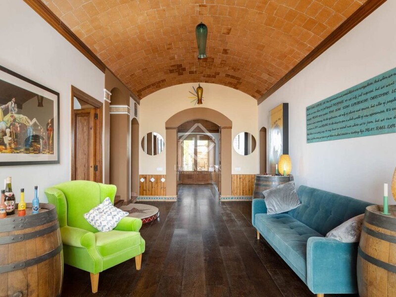 This is a unique opportunity to acquire a superb, fully restored 8-bedroom period house in the picturesque wine-making town of Alella on Barcelona's Maresme Coast. Set across three levels connected by a beautiful internal staircase, the property offers a perfect blend of modern comfort and traditional character and is situated in a serene and attractive environment with views overlooking the Mediterranean. The property is also equipped with a lift. Spread across approximately 836 m² of built surface area, this lovely property offers various reception rooms, a large family kitchen diner and 8 bedrooms. There is also a large entertainment area in the lower ground floor including the original wine cellar, a bar, and a spectacular, multipurpose space with vaulted ceiling. The house provides ample space for a family looking for comfort and privacy in one of the region's most sought-after towns, and the layout is designed to offer flexibility and convenience for daily living. The restoration project was sympathetically managed by the current owner to ensure that the property retains much of its historic charm and original architectural features whilst being perfectly adapted for modern living. The living areas and bedrooms are well proportioned, and the high ceilings on the ground floor and first floor give a sense of comfort and light. The property is equipped with underfloor heating (mains gas) throughout, and solar panels provide additional power for the hot water. The exterior areas include a large private parking area for several cars, a garden laid to lawn, an ornamental garden and a 10m x 4m private pool with poolside shower and jacuzzi. There are also several outbuildings and numerous terraces for al fresco dining. The property's large roof terrace provides 360º views over the surrounding vineyards to the Mediterranean Sea beyond. Beneath the terrace to the rear of the property is an underground rain water collection tank with a capacity of 100,000 litres. The property is listed as part of the Architectural Heritage of Catalonia and is perfectly located on a hilltop plot close to local amenities, including shops, cafés, restaurants, schools, and public transport. The property has a valid tourist rental licence in the case that a future buyer wishes to exploit the property's commercial potential. The house is just 20 km from Barcelona city and 4 km from the nearest beach and marina. The nearest international school (Hamelin Laie) is in the neighbouring village of Montgat. This is a rare opportunity to acquire a slice of history in one of Barcelona province's most prestigious towns. Please contact us now to schedule a viewing.