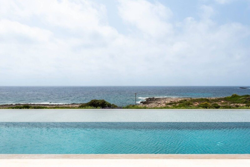 Located in a truly privileged position, this distinguished villa stands on the front line of the south coast of Sant Lluís. Its distinction is manifested in its impressive size, spaciousness and avant-garde design. This is a residence of incomparable luxury and elegance, enjoying the utmost privacy and providing an exceptionally comfortable and sophisticated living space. Its expansive exteriors include an immense swimming pool that merges seamlessly into the waters of the Mediterranean Sea, offering unparalleled panoramic views. Undeniably, this property is one of the most outstanding gems of modern architecture on the island of Menorca.