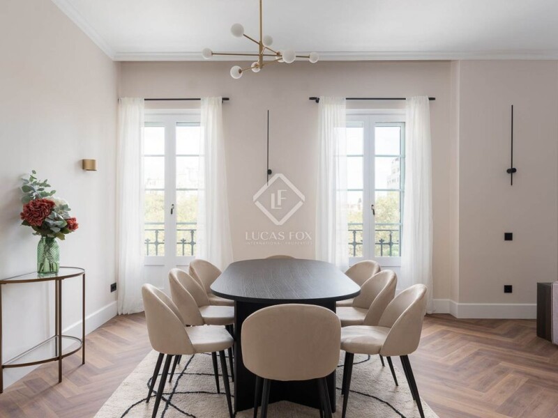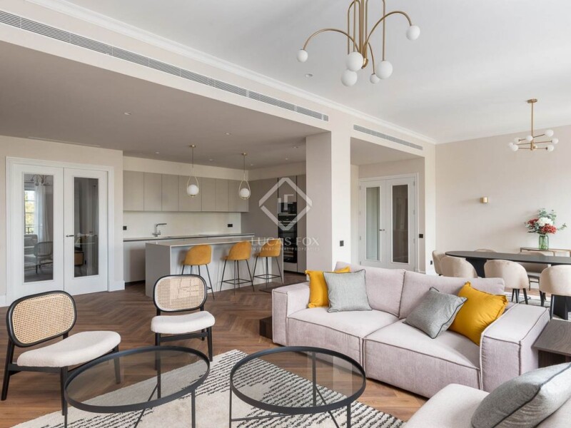 Located in the heart of Barcelona, opposite the emblematic Plaza Urquinaona, this exclusive, fully exterior facing, renovated property with luxury finishes offers an unrivalled living experience. Upon entering, you will find a practical laundry room room, a storage room room ideal for storage and a guest guest toilet . The property opens onto a spacious and bright day area, an open-plan space of 65 m2 that includes the dining room living room and a modern open-plan kitchen. This space enjoys extraordinary natural light thanks to its three balconies with views of the city. The kitchen is top of the range and is equipped with top-quality Siemens appliances , including a dishwasher, a large American-style freezer, an American-style fridge, an oven, a microwave and an elegant wine cellar. The central island not only offers plenty of storage space, but is also the heart of the kitchen. In the living room , a decorative water fireplace stands out, adding a touch of sophistication to the environment. The night area is made up of three large double bedrooms, perfect for enjoying rest and privacy. The master bedroom is a real luxury, with an en-suite bathroom that includes a designer bathtub, shower and double sink. In addition, there is another full bathroom with double sink and shower that provides comfort to the other rooms. There is the possibility of creating a fourth double bedroom if desired. The property has been completely renovated and has high quality finishes, including air conditioning and independent heating in each area for greater comfort, as well as osmosis and water softening systems. In addition, it is sold fully furnished and ready to move into. The building has a concierge service, which guarantees greater security and peace of mind. The property includes two large parking spaces in the same building, a real advantage in the city centre . This property is a unique opportunity to live in the heart of Barcelona, as it combines luxury, comfort and an unbeatable location.