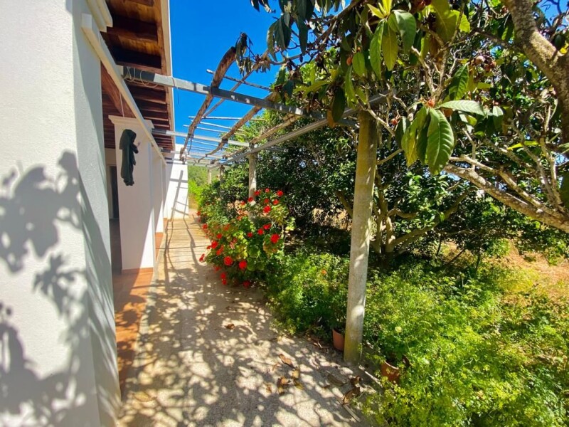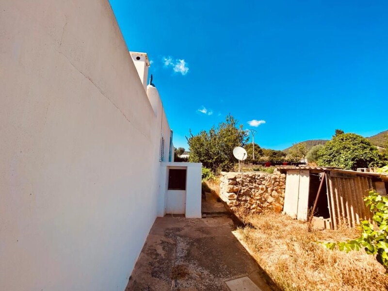 100 years old finca in Cala Jondal for sale Finca located in the sought-after neighbourhood of Cala Jondal. The house dates back 100 years and sits on a 7000 sqm plot which is ideal for cultivation. It has 3 bedrooms and a bathroom in the main house, the kitchen is typical for Ibizan fincas placed in an annex, the two units are connected by a covered terrace. The living area has high ceilings and a fireplace. One of the bedrooms adjoins the living room, the other two and the bathroom are located along the corridor. The property offers many possibilities for further development, there is the possibility to convert the 2 large garages into guest studios, and there are also options for the creation of an alternative swimming pool. There are also livestock sheds on the property that can be used for other purposes. The water comes by truck however the property is connected to the electricity grid.