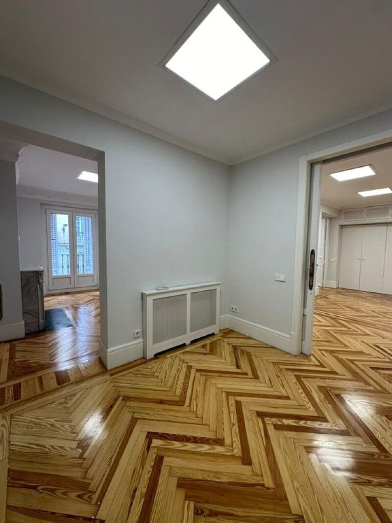 We offer an exclusive property of 223 cadastral square metres to refurbish. It is located on the first floor of a beautiful and representative stately estate, in the elegant neighbourhood of Los Jerónimos, just a few metres from the Retiro Park and the Puerta de Alcalá. This property has a fantastic location in the most exclusive area of Madrid, next to the church of Los Jerónimos and the Casón del Buen Retiro, just a stone's throw from the Retiro Park. The Jerónimos neighbourhood offers magnificent buildings and palaces from the 18th century, as well as being next to one of the largest concentrations of museums in the world, including the Prado Museum, the Thyssen-Bornemisza, the Reina Sofía Museum and the Caixa-Forum. The area is perfectly connected by public transport to the whole city. All this makes this property an excellent opportunity to live or invest in this exclusive enclave. The property is currently distributed in a large reception area with entrance hall and large living room with two large balconies that give an enormous amount of light, another exterior room with another balcony, an office and separate dining room and a guest toilet, a separate kitchen. The sleeping area is made up of three large bedrooms, the master bedroom is a large suite with en-suite bathroom, the other two bedrooms share another large bathroom, both bedrooms are equipped with fitted wardrobes. The property is equipped with porter service. In its architecture, the high ceilings and the wooden floors stand out.