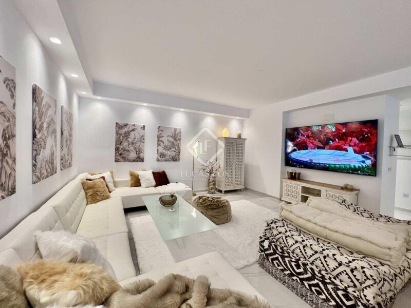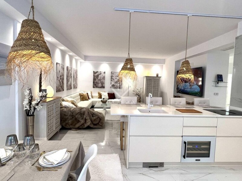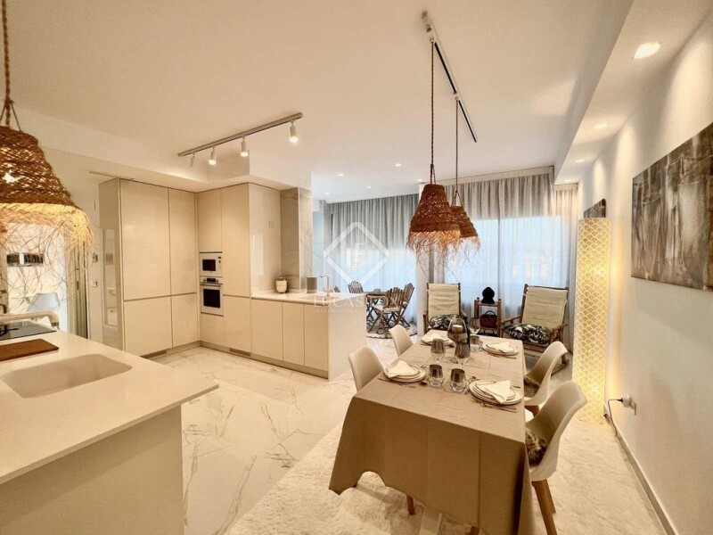 This exquisite 117 m² apartment in the heart of Plaza Toros has undergone a complete renovation, meticulously crafted with attention to detail and finished to the highest standards. Situated on the ninth floor of a well-maintained building with a lift, this apartment offers an unbeatable location. Here you can enjoy the vibrant atmosphere of Plaza Toros and all the amenities it has to offer, from restaurants and cafés to cultural attractions. Stepping inside the apartment one cannot help but be impressed by the sleek and sophisticated design that graces every inch of this modern home. No detail was spared in the extensive renovation completed in May 2023. Every aspect of this home was transformed, from updated water pipes and electrical systems to brand-new windows, a modern kitchen, and stylish bathrooms. The property features an open-plan living and dining area, a kitchen, 3 bedrooms and The east-facing windows allow you to wake up to the gentle morning sun streaming in bathrooms, one of which is en-suite. Furthermore, there is a large covered terrace with sliding floor-to-ceiling windows that can be opened up. You can unwind and enjoy breathtaking views of the famous Santa Barbara Castle from your very own Jacuzzi space. Whether you're relaxing after a long day or entertaining guests, this exceptional feature takes luxury living to the next level. This property boasts smarthome technology, allowing you to control your home with a simple touch on your iPad, managing everything from blinds, curtains, and climate settings (heat and cold) to a state-of-the-art Sonos speaker system. Efficiency and comfort at your fingertips. The property's eco-friendly features include 8 solar panels generating 455 Watts of clean energy and a 5.2-kilowatt battery system. Enjoy energy savings while reducing your carbon footprint. Please contact us for further information about this home that is move-in ready and built to impress.