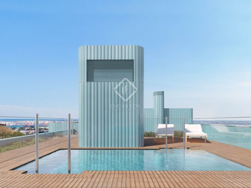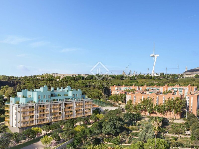 Lucas Fox presents Montjuic Living, an exclusive development of 102 new build two- and three-bedroom homes. This development is located in two modern buildings with avant-garde architecture, next to the iconic Montjuic park. Designed by the renowned studio Adoras atelier arquitectura, this project combines the cosmopolitan lifestyle of Barcelona with the serenity of a unique natural environment, offering its residents an incomparable living experience. The location is unbeatable, as it is located in a consolidated environment close to prestigious schools, hospitals and sports facilities. In addition, it stands out for its excellent connection to the vibrant urban atmosphere of the centre of Barcelona. Each Montjuic Living property has been designed to optimise comfort and functionality through spacious, bright spaces that invite outdoor living. The interiors stand out for their sophistication and quality of finishes, as they integrate high-end materials and contemporary solutions that reinforce the modern aesthetic and comfort of the home. The generous terraces and panoramic windows not only allow natural light to flood every corner, but also connect the interior with the majestic surroundings of Montjuic, creating a true urban oasis. This exclusive penthouse is located on the sixth floor of building A. It consists of 98 m², three bedrooms and two bathrooms in an optimized layout to maximize comfort. Its day spaces are characterized by their spaciousness and are complemented by two large private terraces of 26 m² combined, ideal for enjoying the exterior in total privacy. Montjuic Living offers a series of high-end amenities, designed to enjoy comprehensive well-being. On the rooftop, we find a large swimming pool next to a solarium and a children's play area. In other words, a perfect space for moments of relaxation and leisure with the family. The ground floor has a professional gym equipped with state-of-the-art technology, a coworking space and a multipurpose room for private events, which brings an exclusive and practical touch to everyday life. This project represents the perfect fusion between nature and urban design, offering a balance between modern comfort and the charm of one of Barcelona's most iconic natural enclaves. Please do not hesitate to contact Lucas Fox for more information on this exceptional opportunity.