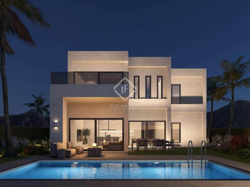 This wonderful new build property benefits from a beautiful modern design, offering spacious living with high ceilings and comes equipped with comfortable underfloor heating via renewable energy heat pump and integrated air conditioning, offering energy efficiency throughout the home. A long driveway leads to the front door of the home. A private garage with electric door offers space for one vehicle, and there is a carport for various cars. We are welcomed into the home via the entrance hall and directly into the open-plan living and dining area, a bright space thanks to the many windows that let in plenty of natural light. The living area also enjoys a double height ceiling, further enhancing the spacious feel of this home. From the living area, you have direct access out to the partially covered terrace and the swimming pool. The deep 8x4 m² pool is a swimmer's dream and is situated on the same level as the living area and outdoor terrace, perfect for socialising with friends and family. The fully equipped, open-plan kitchen with central island is located next to the dining area, making for an easy flow through the living area. There is a large bathroom on this level as well as one double bedroom benefitting from built in wardrobes and direct terrace access out to the swimming pool area. A practical laundry and storage cupboard is situated under the staircase in the entrance hall. A staircase leads to the upper level onto the mezzanine area with views down to the lounge. There are two double bedrooms on this level, both with built-in wardrobes and two bathrooms, one en-suite to the main bedroom. The main bedroom enjoys direct access out to an 11.70 m² private terrace with lovely sea views and the perfect spot for you to enjoy your morning coffee or an evening sunset over the bay. The other double bedroom also benefits from the sea views and has access out to a little balcony. The outdoor living area offers a very large 900 m² rustic garden area to the back of the home, offering many possibilities, ideal for families with young children to use as a play area as well as pet friendly. There is plenty of parking space and to the front of the home to enjoy the swimming pool and barbecue area with both a covered and open terrace. The garden in front of the home is gravel laid and easy maintenance with hedges, shrubs and palms. This property would make a great family home as well as offer a good rental investment opportunity. Please contact us for further information.