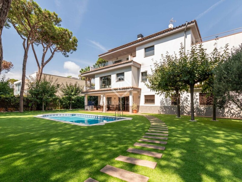 Lucas Fox exclusively presents this impressive luxury home in the exclusive area of La Pineda, Castelldefels. The 2016 property has a surface area of 614 m² on a large plot of 1,362 m². This magnificent three-storey property offers total privacy and is located just two minutes walk from the beach. The house has nine spacious bedrooms and seven full bathrooms, all functionally distributed. It also has three fully equipped kitchens, ideal for large families or those who enjoy hosting events at home. Exterior, there is a private swimming pool surrounded by grass, perfect for relaxing; a spacious barbecue area for outdoor meals and landscaped outdoor areas . Finally, there is a garage, with capacity for several vehicles. This property is ideal for those looking to live in a natural environment close to the sea. Contact us for more information or to schedule a visit.