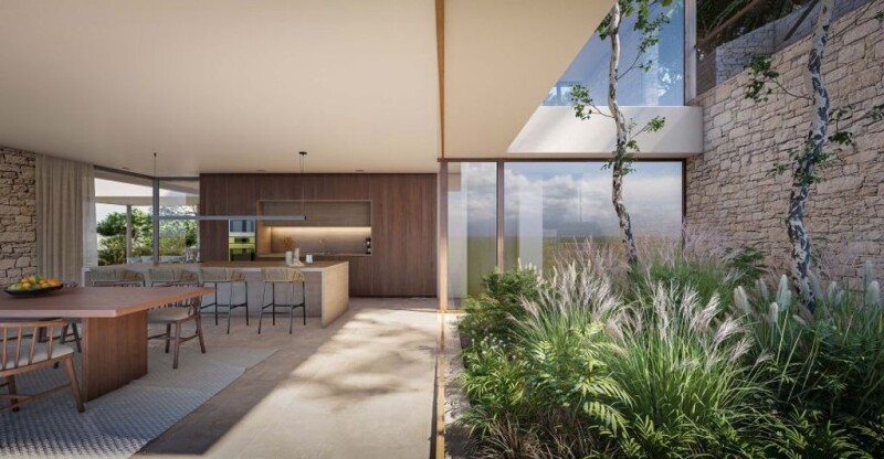 Introducing Villa Piscis, a luxury villa with Mediterranean flair at the foot of the Montgó mountain in Jávea. This new project is exclusive to MORAGUESPONS and has been designed by the architectural studio Singular Studio. Villa Piscis has been designed to be enjoyed and lived every day making it comfortable and accessible, taking advantage of every angle of the plot and the house. It has a total of 1580 square meters of plot facing south and 491 square meters built, in which we find four large bedrooms with its independent bathroom and guest toilet. The parking area for two cars is located in the upper part of the property. From there we can access the interior of the house by means of a lift or if you prefer by stairs. On the first floor or night floor, we have a pleasant hall and interior patio which connects the whole house. We also have three bedrooms with their three en-suite bathrooms and their wardrobes. Using the lift or staircase, we go down to the main floor or day floor, which has a large kitchen with its hidden sub-kitchen and the incredible open space formed by the dining room and the living room next to the patio and the reading room or office. This floor also has a 23 square metre bedroom plus a 13 square metre bathroom and a 10 square metre dressing room. The day floor is connected and forms part of this, the pool area and terrace with barbecue. An outdoor area with a large terrace and chill out areas where you can enjoy the surroundings and the atmosphere. The gym, which has a changing room, is located in the basement, has a glass window which shows the bottom of the pool. If you are interested in Villa Piscis you can contact us and we will inform you about the specifications, the payment method and the execution time.