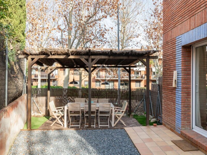 Lucas Fox International Properties is pleased to present this exclusive semi- townhouse with private garden , in the prestigious area of Parc Central-El Colomer, in Sant Cugat del Vallès. The property stands out for its exceptional location, which is very quiet, but is just a few minutes from the train station and the city centre , with all amenities. This is one of the most sought-after areas of Sant Cugat: a quiet residential area with all amenities, shops and transport just a few steps away. The 250 m² property spread over four floors offers spacious, versatile and light-filled spaces, ideal for adapting to the needs of any family. In addition, its functional design offers great comfort. Upon entering the ground floor, we find a welcoming entrance hall that connects to a large garage. This floor has a ensuite bedroom and a practical utility room or pantry with excellent storage capacity. On the first floor, intended for the day area, there is a spacious living-dining room bathed in natural light, which opens onto a private L-shaped garden . This exterior space, which includes a pergola and a dining room area, is perfect for enjoying outdoor gatherings or moments of relaxation. The living room has an elegant fireplace that provides warmth. The independent and fully equipped kitchen includes a space for informal meals. A guest toilet completes this floor. On the second floor, there is the bedroom area, with three exterior bedrooms. The bright and spacious main bedroom includes a private bathroom, while the other two bedrooms share a second full bathroom , both with high quality finishes. The third floor offers a versatile space that can be adapted as an study, games room or even an additional bedroom . From here, there is access to a solarium/terrace, ideal for relaxing and enjoying the sun throughout the day thanks to the excellent orientation of the house. Its finishes include wooden floors, wooden interior carpentry, aluminium exterior carpentry, mains gas radiator heating, a fireplace and air conditioning. Furthermore, it is an exceptional opportunity, as few homes in the area have a large private garden and a layout so well thought out for the family-friendly lifestyle. Please contact us for more information.