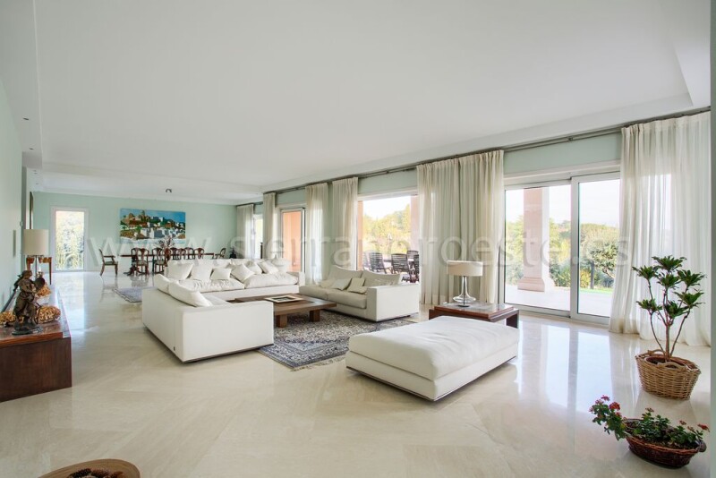 Impressive and impeccable luxury villa of 1,400 m2 built on a 6,285 meter plot. Modern, with an exclusive design, large windows, open spaces and great beauty, the house is located in an enclave of the Golf with magnificent views, beautiful sunsets and a lot of privacy. All rooms en suite with bathroom and dressing room and terrace. Living room of more than 200 meters, kitchen with 2 islands, toilet and master suite on the street level. The suite with 2 bathrooms and 2 dressing rooms and access to the porch of the chalet. On the first floor 2 large en-suite rooms. And in the basement, a service area of about 60 m2 (bedroom, bathroom and laundry area), cellar (with kitchen and large dining room), pantry and garage for 10 cars. Security gate and guest pavilion with independent entrance of 150 m2. Gated community with 24-hour security and social club.