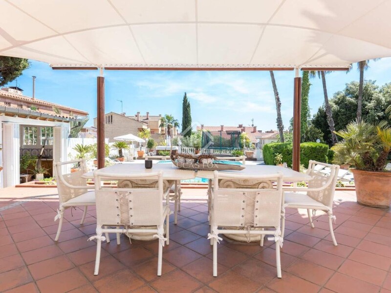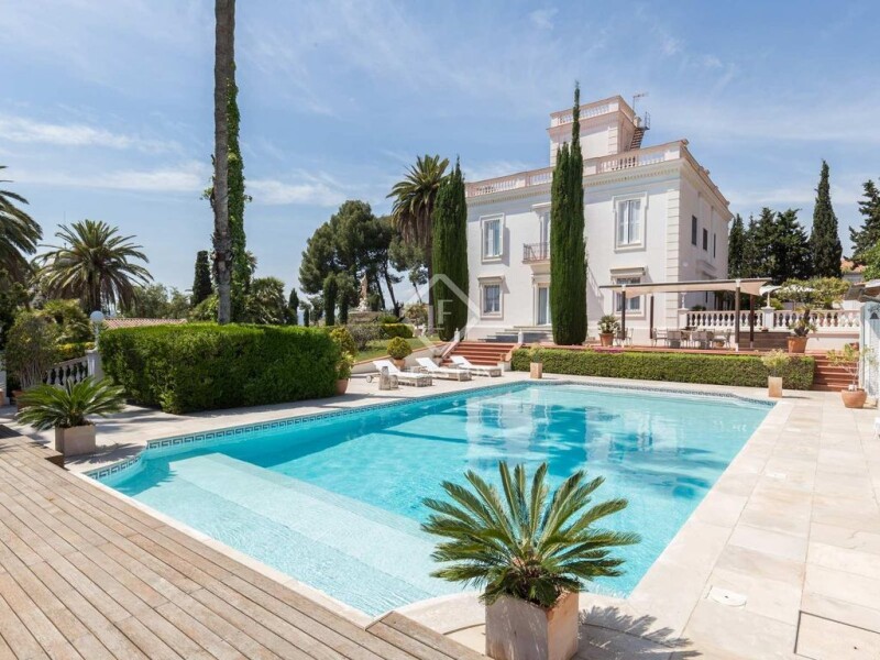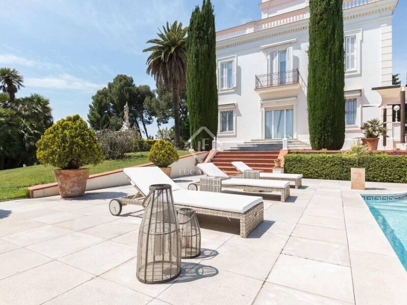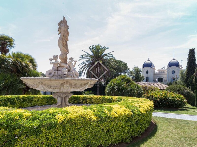 Extraordinary mansion of 4,000 m² in Sant Just Desvern. Lucas Fox presents this magnificent unique villa, located in the centre of Sant Just, on the main street of the town, but with absolute privacy. Known as Casa Sans, it was built in 1910, following the Noucentista movement of the time. It is currently part of the Inventory of the Architectural Heritage of Catalonia. The estate has a 4,000 m² plot and a built area of 800 m², which is divided into the main house, the guest house, the staff house, a garden with pool and jacuzzi, garage, gym and squash court. In total, it has 9 bedrooms and 9 bathrooms. The house was renovated in 2014, but has preserved the charm and original structure of the villa. The main house sits on elevated ground, facing the Roman fountain, which gives it a solemn and imposing character, which at the same time allows a peripheral view of the entire enclosure. It has 420 m² distributed over three floors. The first has an office-library, kitchen, living-dining room in 2 spaces and a guest toilet. The second floor has the main suite with attached living room, dressing room and bathroom, and three more suites with their own bathroom. On the third floor we find a bedroom with a bathroom and a terrace of 80 m². The staff house consists of 75 m² with two bedrooms, bathroom, kitchen and living room. The guest house is made up of 65 m² with a double bedroom, bathroom, large living room and bar. Moving on, the splendid garden has a large swimming pool, summer kitchen, and jacuzzi. From here, there is access to the fitness room with sauna and complete bathroom, squash court and covered garage with capacity for five vehicles. Finally, we dispose of several recreation areas throughout the entire compound, in addition to the independent chauffeur's entrance with space for more than 12 vehicles. The plot's perimeter is protected by a large wall that provides with great privacy, with the most advanced security system. This one-of-a-kind property is a truly unique opportunity as there is no other that comes close to match its size, beauty, amenities and numerous tax benefits. Listed as Architectural Heritage, it has a substantial reduction in the IBI payment, in addition to being exempt from Wealth Tax.