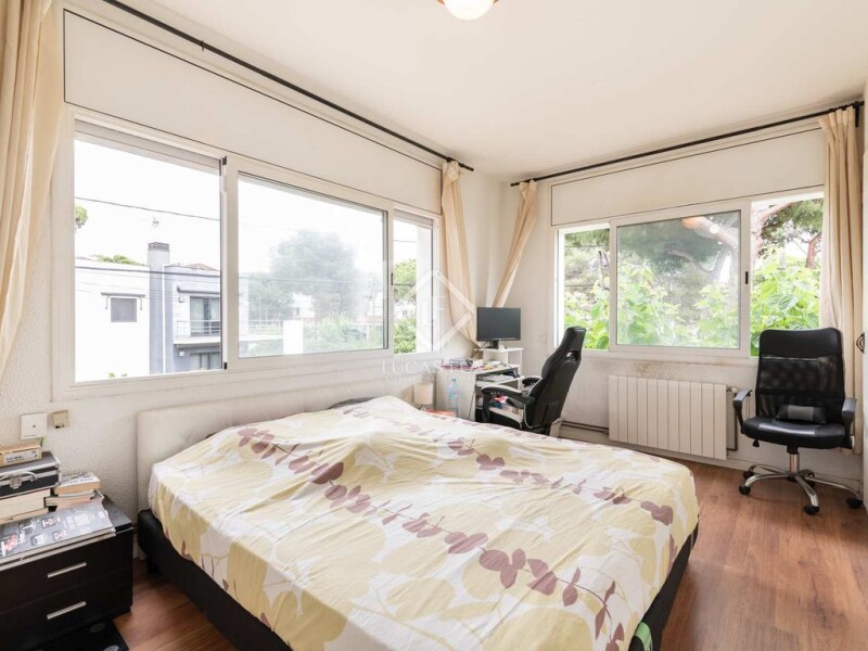 Welcome to your Refuge of Elegance and Comfort in Lluminetes de Castelldefels This beautiful classic-style home awaits you in the peaceful Lluminetes neighborhood of Castelldefels, where serenity meets traditional beauty. Entering through the garden, you will be greeted by a romantic porch that invites you to explore every corner of this charming home. Upon entering, you will find a smart two-story layout that maximizes space and functionality. On the ground floor, a bright living-dining room with a cozy fireplace becomes the heart of the home, ideal for sharing special moments with your loved ones. The kitchen gives you the perfect space to unleash your culinary creativity, while an additional bedroom and full bathroom add versatility and convenience to this floor. When you go up the stairs to the first floor, you will be welcomed by three more rooms, two singles and one double, each with its own charm and personality. A bathroom with shower completes this level, offering comfort and privacy for the whole family. But the true gem of this property is found in its outdoor spaces. A lush garden surrounds the house, providing an oasis of serenity where you can enjoy the natural beauty and relax outdoors. A barbecue area invites you to host outdoor gatherings and delight your guests with delicious barbecues, while a garage with terrace offers stunning views and a perfect place to enjoy the sea breeze. In addition, a practical utility room, a woodshed and a shower room complete the elements that make this house the perfect place to call home. With a privileged location that combines the tranquility of the natural environment with the proximity to amenities and leisure activities, this house in Lluminetes de Castelldefels is more than just a property: it is the perfect refuge where classic elegance meets modern comfort. Contact us today and make the dream of having your own oasis in this charming coastal town come true!.
