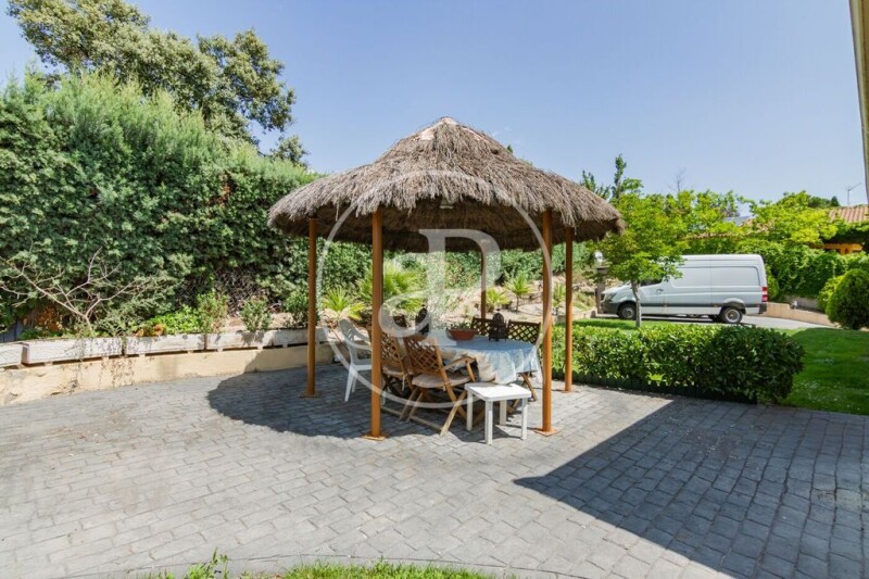 DETACHED HOUSE WITH GARDEN AND POOL IN SANTO DOMINGO Aproperties Real Estate presents a villa with excellent upgrade possibilities. The plot is located in the upper part of the urbanization, and has a lot of privacy and excellent 180º views, to the lush gardens of the urbanization itself and clear views to the south, with the skyline of Madrid in the background. The house is distributed on two floors, and its good distribution allows to make life in one of them. The structure of the house offers a variety of reform options. The house consists of 490m2 and stands on a plot of 1.700m2 on two levels. The main floor has a large terrace overlooking the garden, which gives it beautiful and unobstructed views. On this floor there is a large kitchen, with direct access to a cozy gazebo, living room, guest toilet and four large bedrooms, all with en suite bathroom. The first floor has a large multipurpose room, wine cellar, guest toilet and garage with two parking spaces. The direct access to the garden also gives this floor a lot of independence. The garden, with abundant vegetation, consolidated and very well maintained, is designed on two levels. South facing is the swimming pool, and in the highest area, facing north, we find the pleasant gazebo with barbecue. In this part of the garden there is also a garage, with capacity for up to three cars, which is accessed via a convenient ramp from the street. Can you imagine living here?.