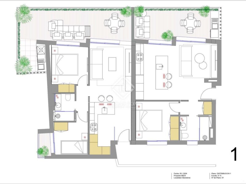 Ses Roques Baixes is an exclusive new development in a typical, Ibiza-style building on the west coast of the island, just 15 minutes from Ibiza City and 25 minutes from the airport. The development enjoys an ideal position, with the seafront promenade and turquoise waters right in front of the building. Located just a few steps from the beach, next to Cala Gració and Caló des Moro, with a large swimming pool in a communal garden, this is an idyllic place to enjoy the island of Ibiza and its pleasant year-round climate. This first floor apartment is spacious, bright and open to the outside, allowing you to enjoy sea views with total privacy. It has an interior surface area of 53 m² and private outdoor space covering a further 14 m². Inside, we find a living room, dining room and kitchen with access to the terrace and 1 bedroom with 1 bathroom on the other side of the home. As far as interior design is concerned, we find large tiled floors with a white stone finish that unites the interior and the terrace, natural wood, refined lines and large windows that make every space in the home feel natural and bright. The finishes and furnishings have been selected for their simplicity, elegance, and warmth and the buyer has the opportunity to personalise their new home if they so wish. Low consumption lighting, home automation and an aerothermal energy system are just some of the modern features of these new homes. Optional equipment for outdoor areas is also available, such as: jacuzzi/pool on the terrace or rooftop solarium, outdoor kitchen on the rooftop solarium and/or a private pool. Furthermore, parking spaces and storage rooms are available from 27.000€. Please contact us for further information.