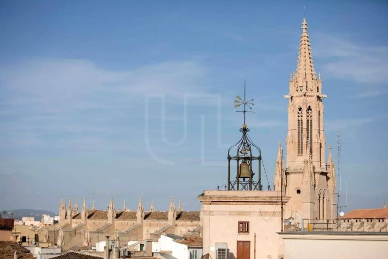 One of the most exclusive Palace in Palma's old town, just next to Plaza de Cort with the City Hall opposite and luxury hotels like Hotel Cort and Hotel Mama. The building consists of three apartments and a large roof terrace with fantastic views over Palma. The roof terrace can be divided so each apartment gets a private part. Here you live centrally but still in a quiet location. Close to the beach, beach walk, restaurants and the famous shopping street Paseo de Born. Beautiful duplex apartment anno 1899 with antique details. Access to roof terrace. There are plans to install a lift in the building.