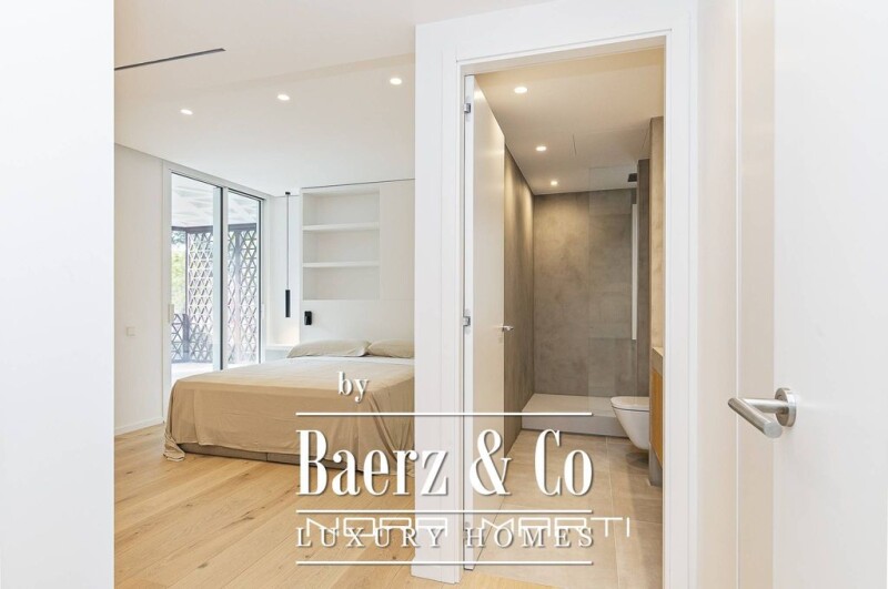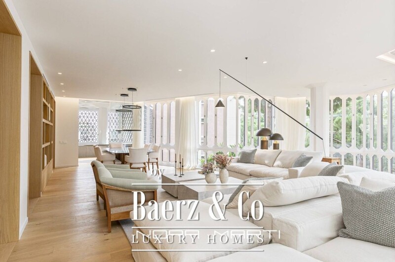 We present this magnificent property located in the Plaza Jardines de Toquio, the most beautiful area of Pedralbes, for those who value privacy and comfort. It is in a residential building built in 1970 by the Catalan architect Claudio Carmona Sanz with a unique design, with a garden and a communal pool. The house occupies the entire second floor of the building and has a constructed area of 273.49m² with a private terrace of 14.12m². In the day area we find a large living room of 69m² with access to the terrace of 14.12m², thanks to its large restored wooden windows, they offer a feeling of light and spaciousness in the room. Designer kitchen by the Modulnova brand with an office, laundry area and a service room with a private bathroom, and a guest toilet. In the night area we find two double bedrooms en suite with built-in wardrobes and two single bedrooms that share a bathroom. The property was renovated with the utmost detail to highlight the architectural design, enhancing the unique style of the building. To ensure comfort during the coldest days, the entire house has an underfloor heating system, the air conditioning system offers the possibility of adjusting the temperature in each room independently. Domestic hot water (DHW) is generated by an aerothermal heat pump and DHW recirculation, the aerothermal heat pump uses the energy of the outside air to heat the water, which means considerable savings on the electricity bill. Parquet floors, with their top layer of oak wood, minimalist style folding doors, lacquered wardrobes, sensory lighting, matte finish walls and smooth texture, create a canvas of elegance that embraces every corner. This room is completed by lacquered panels, with integrated wardrobes and a large mirror that reflects sophistication in every angle. The sale price includes two indoor parking spaces and one outdoor parking space. It is an ideal home for those who value privacy, distinction and comfort.