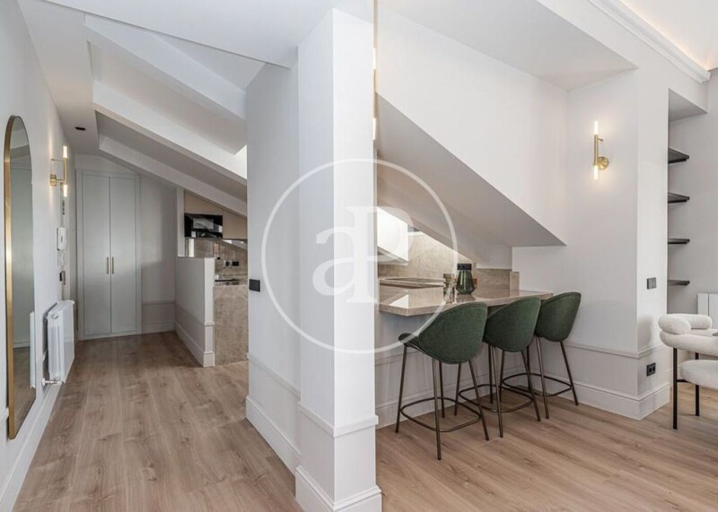 HOUSING IN THE PROCESS OF COMPREHENSIVE REFORM. Beautiful house of 135m2 according to cadastre, located on the fifth floor of a beautiful property in the traditional Barrio de Cortes, Centro district, The property is distributed in large kitchen with quality finishes and high-end appliances with island as a separation to the beautiful living room with terrace bordering the area, which provides spectacular light and unobstructed views. In the most private area of the house we have two double bedrooms with plenty of storage space and two bathrooms, one of them en suite. The property has a parking space on the property. The neighborhood of Cortes Huertas, also called the neighborhood of letters for its great literary activity in the golden century, where important authors such as Cervantes or Lope de Vega lived, is bounded by the streets Atocha, Calle de La Cruz, Carrera de San Jeronimo and Paseo del Prado. Lively both at night and during the day, it stands out for its great cultural offer with some of the most important theaters of the capital, restaurants, art galleries, studios of artisans and painters. Currently the vast majority of its buildings still retain architectural elements of the time, which makes it different from other neighborhoods of the capital. Very well connected to the whole city, just minutes from the Retiro, and the most emblematic points such as the Royal Palace, Puerta del Sol, Madrid de los Austrias. A great choice to live. Can you imagine living here?.
