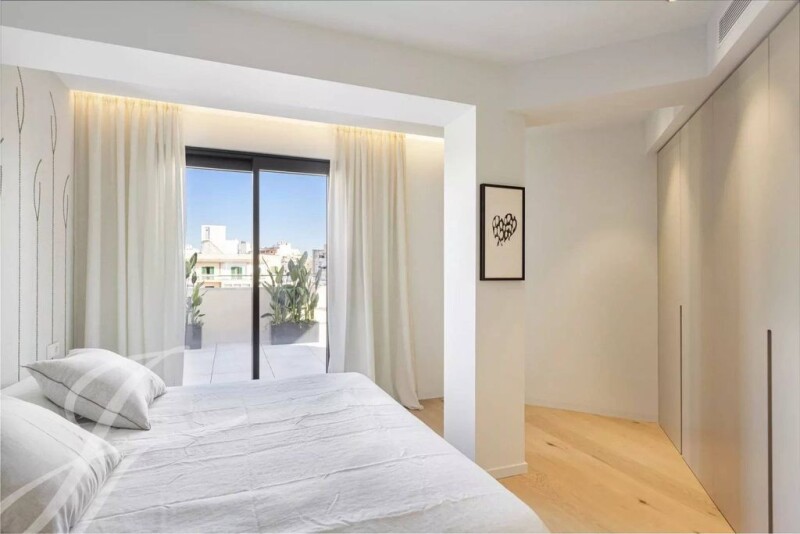 This recently refurbished penthouse in the centre of Palma de Majorca is located on a pedestrian street facing a square, which gives it unobstructed views and great privacy. It has a large terrace of more than 40 m2, ideal to enjoy an outdoor dining area and a lounge area with sofa. The penthouse is fully equipped with ducted air conditioning throughout and offers a spacious living-dining room with open plan kitchen that connects directly to the terrace. Its two bedrooms and two bathrooms are spacious and cosy. It has been refurbished with high quality materials. It is sold furnished and has a storage room on the communal roof terrace. Although there is no parking space in the building, it is possible to rent a parking space in a public car park just opposite. Ideal for those looking for a modern and exclusive home in the heart of Palma. Palma Centre with its national and international residents has become one of the most cosmopolitan second-home residence areas in the Mediterranean. Offering an incomparable selection of fine dining options, and cultural and sports activities together with its beach makes it an ideal location for a full-time or part-time residence. Due to the expansion of the city, many international investors are now looking to new areas that were in the past predominantly for locals. Area such as the Avenida’s, and its secondary streets have become increasingly attractive due to the competitive difference in prices. Palma offers the best transport hub on the island, just 15 minutes from the airport, with the main bus, metro & train station in the Plaza España and the excellent public transport system means having a car is not a necessity. The port, also in the centre offers numerous connections to the other Balearic Islands, mainland, and other countries, apart from being one of the top cruise ship destinations in the Mediterranean.
