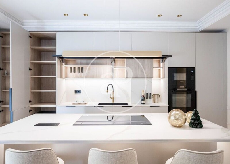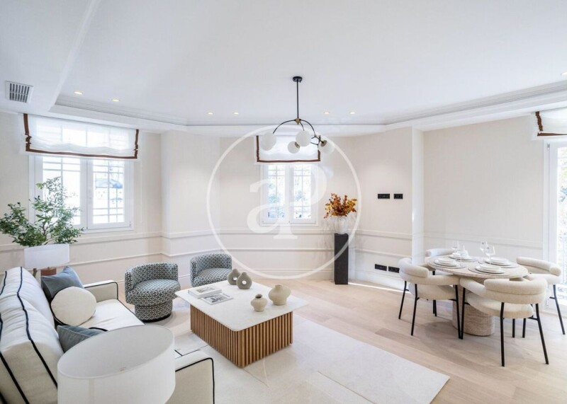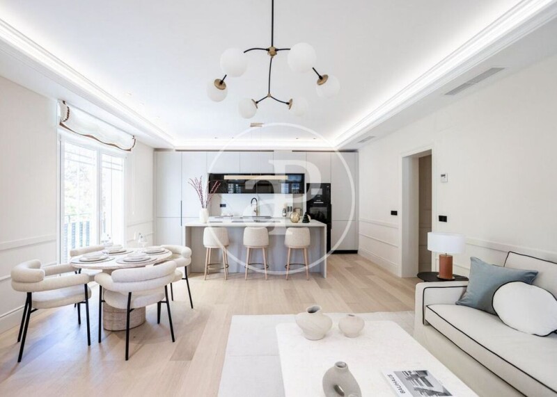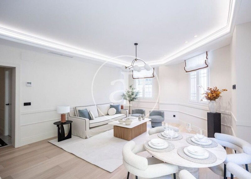 Located in one of the most sought-after and luxurious streets in Madrid's Barrio de Salamanca, on calle Velázquez, in the heart of Recoletos, aProperties offers for sale this beautiful and exclusive property located on the third floor of an elegant classic building that sits on the corner of calle Conde de Aranda and from which one can enjoy marvellous views of the Retiro Park. With a built area of 131 m², the property has been carefully refurbished and designed, resulting in a combination of classic elegance and functional modernity. Completely exterior, its orientation and corner location provide exquisite natural light throughout the day, accentuated by high ceilings and decorative mouldings on walls and ceilings, illuminated with sophistication by indirect lighting. There are two spacious en-suite bedrooms, both equipped with floor-to-ceiling fitted wardrobes, maximising storage space with impeccable design. The two en-suite bathrooms are an example of contemporary luxury, with brushed gold fittings by Ramón Soler, adding a sophisticated and exclusive touch. The entrance of the flat has an elegant marble floor, while the rest of the flat is clad in warm, high-quality wood. The living room integrates seamlessly with the kitchen in an open-plan space, full of light and style. The designer kitchen is fitted with Siemens appliances from the Studio Line range, guaranteeing functionality and avant-garde design. The flat comes fully furnished and decorated by a prestigious interior design studio, which has managed to combine contemporary design furniture with classic details, creating a cosy and refined atmosphere. Every corner of the flat has been designed to offer an unparalleled luxury experience. Residing in this flat, you will find yourself in the heart of the Salamanca district, just a few metres from the prestigious Hotel Wellington, surrounded by the best restaurants in the city, high-end boutiques and renowned art galleries. Its proximity to the Retiro Park, Madrid's green lung, offers an ideal space to relax or practice outdoor sports, just a few steps from your home. Can you imagine living here?.