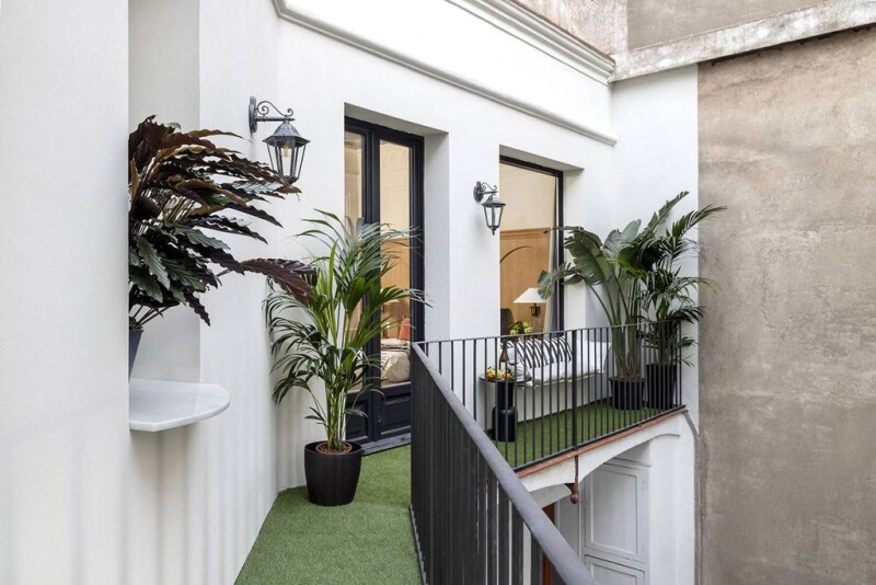 This elegant apartment is located on the top floor of a classic building in the Eixample Derecho, a few steps from Passeig de Gracia and Plaça Catalunya. With 161 m², it offers three suites, a dressing room, seven balconies overlooking the street and a private terrace of 10 m². The distribution guarantees privacy, with one suite currently used as an office, easily convertible into two bedrooms. The semi-open kitchen, with Italian furniture and high-end appliances, connects to a terrace and a laundry room. Refurbished by a prestigious studio, it combines classic and modern design with high quality materials such as natural wood and marble. High ceilings, integrated lighting and custom finishes provide spaciousness and sophistication. Ready to move in, it includes exclusive furniture, underfloor heating, dual zone air conditioning, sound system, Jacuzzi and bioethanol fireplace. A unique opportunity in a privileged location in Barcelona.