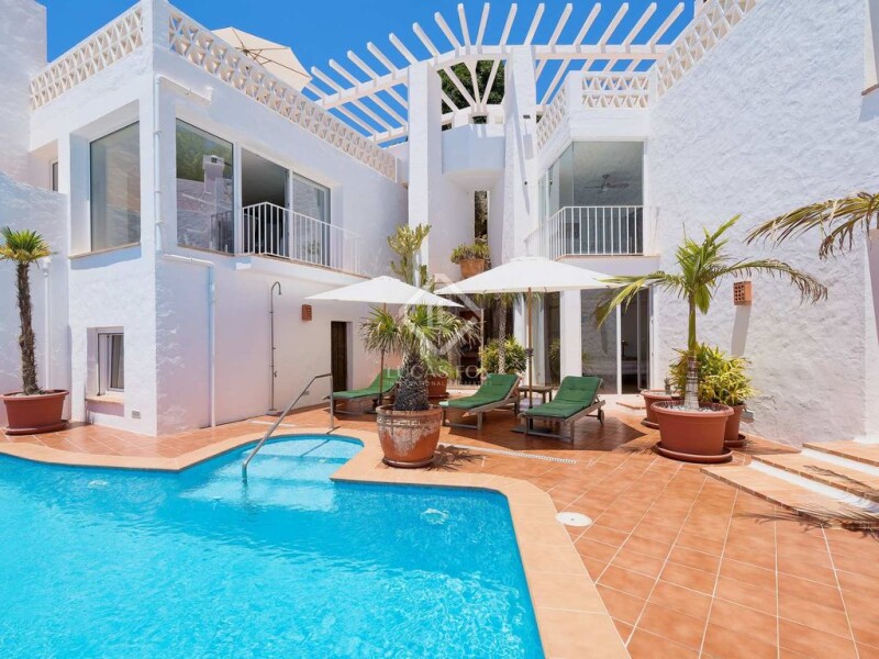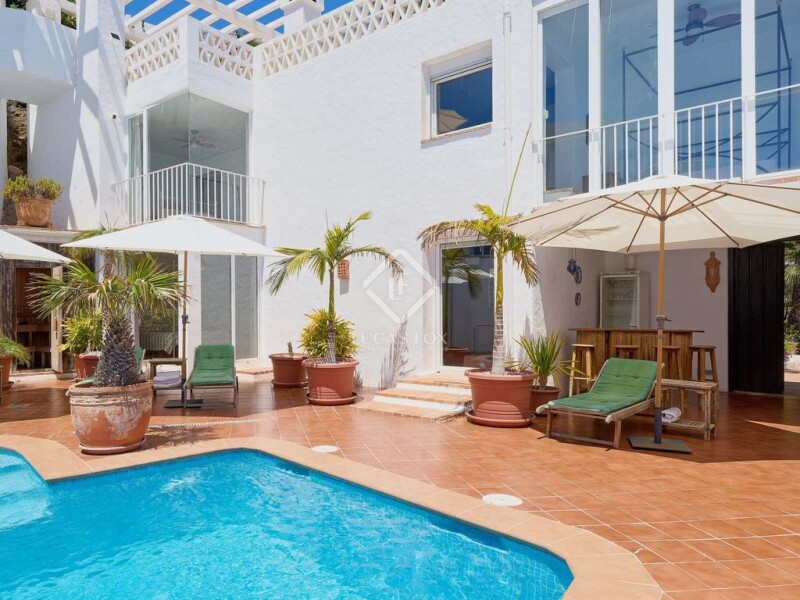 Lucas Fox presents this unique villa in Cotobro, a privileged area located between Punta de la Mona and the city of Almuñécar. This property stands out for its unique style with traditional Andalusian rustic architecture, with a Mediterranean and Ibizan touch. The villa has an ideal southerly aspect and enjoys the best views in the area: of the Mediterranean Sea, the marina of Marina del Este and Punta de la Mona and the natural beach of El Muerto. Its location is ideal for those who want to have a lot of privacy, since to the right of the house the land is not buildable, to the left it is already built and the land at the bottom forms the plot of about 3000 m² in where this property sits. The villa has a built area of about 440 m², divided into three separate houses, all independent with their own access. The property is accessed via a quiet access road, which leads to the open parking area, the closed garage and the main gate. We enter the property from a main corridor that is open with a stylish pergola. From here, there are wonderful panoramic views of the sea and the beautiful tropical garden . The corridor leads to each of the three homes, on the upper floor . Each of them enjoys a rooftop terrace that offers incredible views of the sea and is perfect for enjoying moments of tranquility or celebrating evenings of all kinds. The main house is divided into two floors. Its large floor-to-ceiling windows are impressive with incredible frontal views of the sea. The upper floor has a pantry, a covered terrace in the shade, an open and equipped kitchen, a dining room, a living room with a fireplace. The ground floor houses the main bedroom with a private bathroom that impresses with its beautiful navy blue tiles. From this bedroom, we have spectacular views and also access to the exterior pool, spa and jacuzzi area. The second house is also divided into two floors. On the upper floor we have a small kitchen or kitchenette, a living room that can also serve as a bedroom, a bathroom and another bedroom on the ground floor. It also enjoys sea views and access to the pool, spa and jacuzzi area. The third house is divided again into two floors that could be made independent to configure two separate apartments. The upper floor has a kitchen, a living room or bedroom and a bathroom, all with pleasant views of the green tropical garden with palm trees and the Mediterranean Sea in the background with the marina. The ground floor has a living room with an equipped kitchen and a bathroom. This third house also has its own terrace area. The villa has enormous potential for those who want to enjoy a unique house, perfect as a first residence, as is the case of the current owner who has been enjoying it for more than 25 years. However, it would also be ideal for an investor, since the 3000 m² plot has not exhausted its buildable area and more could be built. Another option would be to segregate and sell. Furthermore, the current sale price is lower than the valuation rate carried out for the villa. Get in touch for more information.