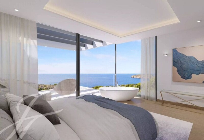 Welcome to your dream home with incomparable views! This exclusive property will be built on a plot of 874 m2 and has 536 m2 of living space. It offers you a unique and breathtaking panoramic view of the endless sea, the famous luxury harbour of Port Adriano and the enchanting Malgrats Islands. This view will captivate you and give you a feeling of luxury and freedom every day. Its refined architecture blends harmoniously into the surroundings and conveys a sense of timeless elegance. The living areas, open and bright, open onto spacious terraces where you can enjoy the warm breeze, highlighting as a unique novelty a garage overlooking the sea! Each room will be designed with great attention to detail, combining modern comfort with aesthetic sophistication. The rooms offer an oasis of tranquillity, as the lush garden and infinity pool provide a haven of relaxation. The stunning design will combine self-supporting structures with cool white plaster and an elaborate minimalist glass façade. Natural stone floors, the finest parquet flooring, lighting design and quarry stone elements are some of the most important details. In addition you will get one of the highest safety standards. The construction works will start shortly and we expect completion in the summer of 2025. This villa will not only be a home, but a lifestyle. Let us help you realise this unique lifestyle. Please contact us for more information and to arrange a viewing. Nova Santa Ponsa, a real hidden treasure in the southwest of Mallorca. This privileged area is a haven for those seeking an elegant lifestyle in natural surroundings. In Nova Santa Ponsa, one is immediately captivated by the idyllic surroundings. The magnificent high-end villas rise majestically, offering panoramic views of the sea and the surrounding lush vegetation. The heart of Nova Santa Ponsa beats in its impressive marina, Port Adriano. Designed by renowned architect Philippe Starck, this world-class harbour is home to exclusive luxury yachts. The crystal-clear beaches invite you to relax, enjoy water sports or enjoy a cocktail in one of the elegant beach bars. Golf lovers will feel like in paradise in Nova Santa Ponsa, as it has some of the most prestigious golf courses on the island. Nova Santa Ponsa offers a wide range of quality services such as fine dining restaurants, exclusive boutiques, luxury spas and excellent sports facilities. It is also strategically located close to other areas of interest, such as the historic city of Palma, where you can enjoy a variety of cultural, shopping and entertainment activities.