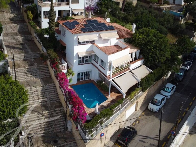 This beautiful house with partial sea views, garden and pool is ideal to enjoy the outdoors. The distribution over three floors plus garage offers a lot of space and versatility. On the first floor there is an entrance hall, a large living-dining room with terrace, kitchen with dining area, pantry, laundry area. It has 2 bedrooms, one of them with bathroom en suite and dressing room plus a large toilet. The upper floor has a living room, 2 bedrooms, 1 bathroom and 1 terrace. The lower floor has a TV room with gas fireplace, 2 bedrooms, 1 bathroom and another room, all with access to the terrace and garden with pool. The basement offers a large space for several cars. Sant Agustin is just a 15-minute drive west of Mallorca's capital, Palma. It’s has a quiet neighborhood and attracts holiday makers and people who work in the surrounding areas alike because of its great connections to Palma, the airport and as well to the southwest part of the island. Most of Mallorca’s international schools are within a 15 minutes drive and the closest beach can be found in Cala Mayor which is around one kilometre away. Shops and restaurants are literally just down road, offering great sea views and local and international cuisine as is the Cala Nova Nautical Club which is famous for its sailing and kite surfing classes and has a long tradition of teaching. San Agustin is composed mainly by residential apartment buildings of which most have good views of the Mediterranean because of the elevated position of the area. The apartments come in all sizes and many of the buildings feature a community pool and garden. It was very popular whithin the british community but has become more sought after by international buyers over the last years.