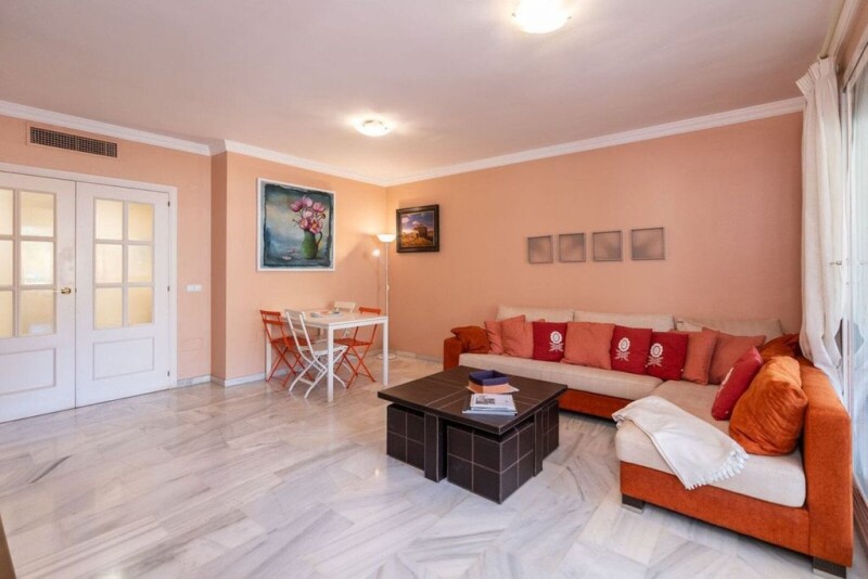 Immerse yourself in the serene elegance of Marbella's prestigious Golden Mile with this charming first-floor apartment in the esteemed El Infantado complex. Perfectly positioned to capture the warm afternoon sun, this west-facing residence offers a tranquil view over lush communal gardens—meticulously maintained and dotted with vibrant floral displays—and a lively swimming pool area. The apartment is tastefully appointed with two well-sized bedrooms and two bathrooms, reflecting a blend of comfort and modern convenience. The main highlight is a delightful covered terrace, elegantly fitted with glass curtains to provide a seamless indoor-outdoor living experience regardless of the season. Complementing the impressive amenities, residents can enjoy exclusive access to two padel tennis courts, perfect for leisure and sport amidst the beautifully landscaped grounds. Each space within this home has been thoughtfully designed to ensure maximum use of natural light, enhancing the fresh, airy feel of the interiors. The property is sold fully furnished, featuring tasteful decor that complements the serene surroundings, making it an excellent value for those seeking a turnkey solution in a prime location. With its close proximity to the beach promenade and mere steps away from Marbella's array of services including top-tier restaurants, chic boutiques, and vibrant bars and shops, El Infantado offers an unparalleled lifestyle in one of the most sought-after areas of the Costa del Sol. This residence is not just a home, but a gateway to a lifestyle of luxury and ease, ideal for those who appreciate the fine balance of tranquility and vibrant city life.