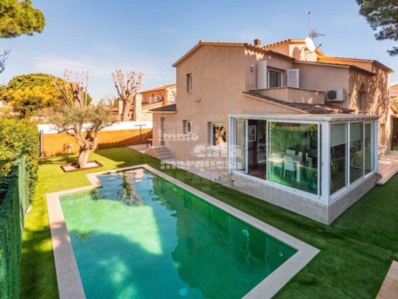 House with very private garden and pool located in Prat Xirlo, 700 meters from the coves of Calella de Palafrugell. The house is made up of a spacious hall with access to the living room with fireplace, dining room, fully equipped kitchen, laundry room, 1 double bedroom and a toilet. On the upper floor we find three double bedrooms (one of them with a private terrace), fitted wardrobes and two full bathrooms. The house has a pool and garden, parking area for 4 or 5 cars, a storage room, oil heating, double glazing, aluminum exterior carpentry. Surface: 264 m2 Plot surface: 558 m2 O: S/O Year of construction: 1994 Purchase expenses: 10%-11% ITP + NOTARY + REGISTRY.