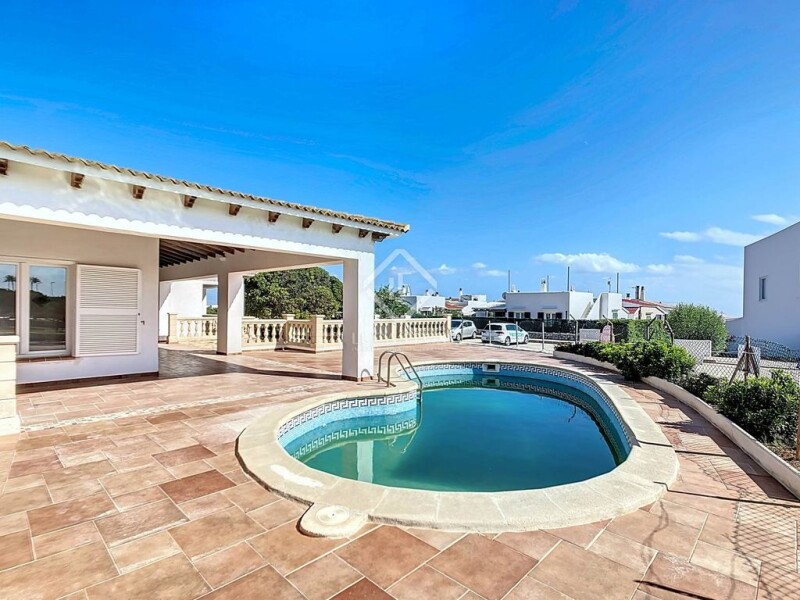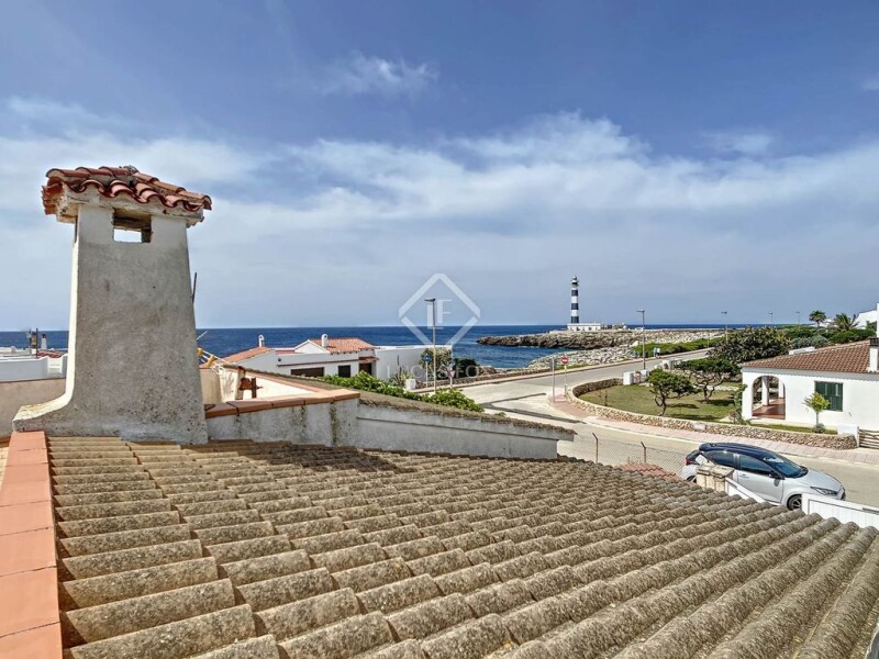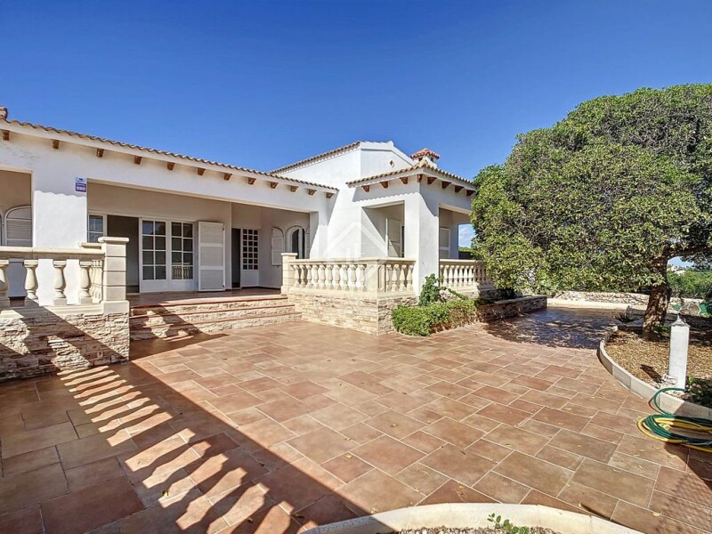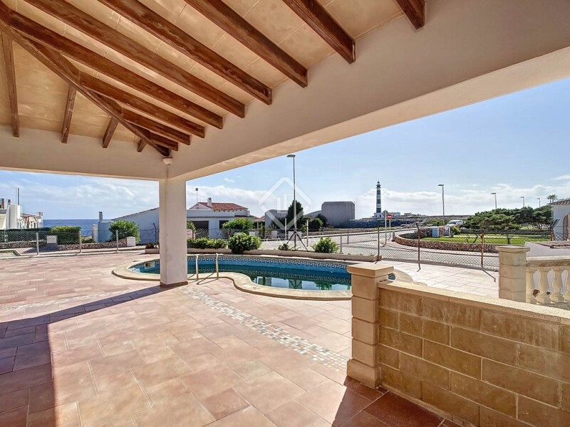 Lucas Fox presents this 241 m² villa to renovate on a 715 m² plot on a second line with sea views in the Cap d'Artrutx development . The property is distributed all on a ground floor. We access the house through a beautiful and spacious porch with sandstone ceilings and exposed wooden beams. At the entrance, we are welcomed by a large entrance hall that separates the day area from the night area. To the left of the entrance hall, we find a living room with a fireplace and access to the covered porch with lateral views of the sea. To the right, we have a utility room and the large kitchen with fireplace and access to the porch and barbecue area. At the end of the entrance hall, we find the night area. Here a corridor leads us, on the right, to the master suite with an attached single bedroom that could be used as a dressing room and a complete bathroom with a bathtub and shower. On the other side of the corridor, we have two double bedrooms that share a bathroom, as well as access to the garage. From the outside, going up a staircase we reach a large solarium terrace with views of the sea, the Cap d'Artrutx lighthouse and the sunset. The exterior has a large terrace, which was previously a garden area, with a 49 m² pool, a barbecue area and a rear garden . The property requires an aesthetic renovation , since the structure of the house is in perfect condition and with a good layout. It is located in a residential area of Cap d'Artrux where the only vehicle traffic is that of the neighbors. An ideal property to live all year round or spend seasons with family and/or friends. Contact us for more information or to arrange a visit.