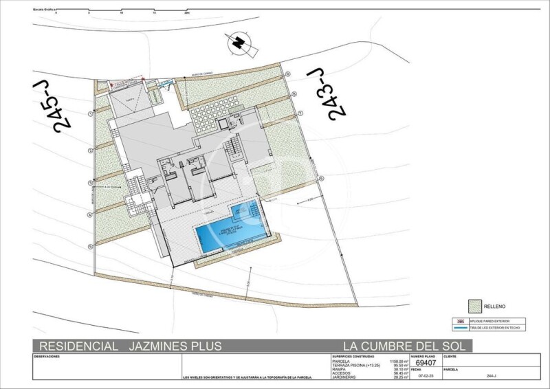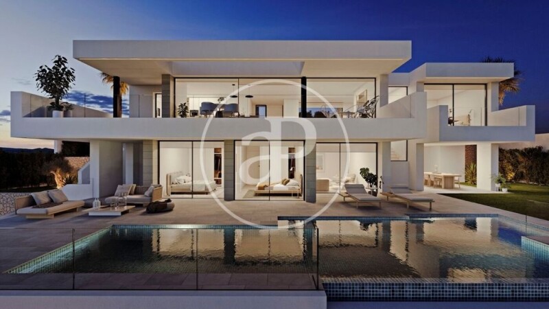 On the plot number 244 of Residential Jazmines, we discover Villa Marina, a villa with modern architecture, with open spaces, a lot of light and impressive sea views are the principal defining characteristics for this property. Villa Marina has got 3 bedrooms with en-suite bathrooms, the master bedroom being a private space to relax facing the sea either in your hot tub or on your private terrace. The dining/living room need a special mentioning, spacious and bright, with access directly to the terrace with large floor-to-ceiling windows, which you can collect fully to extend the dining room to the terrace, and enjoying incredible sea views. The amenities in this villa are endless and reflects its quality and equipment: elevator, closed garage for 2 vehicles, communicated interior with the hall, TV room, home automation, laundry, floor heating throughout the house, infinity pool and large garden areas. A marvelous place to live all year around, enjoying the Mediterranean climate and the wonderful sea views in Residential Resort Cumbre del Sol. Jazmines, a paradise facing the Mediterranean, is located in one of the most exclusive areas of the Cumbre del Sol Residential Resort. A unique and harmonious architectural ensemble, in which the villas have been designed to enjoy the marvellous enclave in which they are located, where the sea and nature are present at all times. Large villas with contemporary architecture and south-southwest orientation. An ideal area for those who wish to acquire a unique villa, with an exclusive design, with the highest standards of quality, in a residential area where privacy is a priority, with an infrastructure and landscaping to match the villas it houses. With an enviable location, next to spectacular coves and beaches, surrounded by nature, with a unique gastronomic and leisure offer, well communicated with two international airports less than 100Km away, and strategically located between Alicante and Valencia, a paradise on the Costa Blanca North.