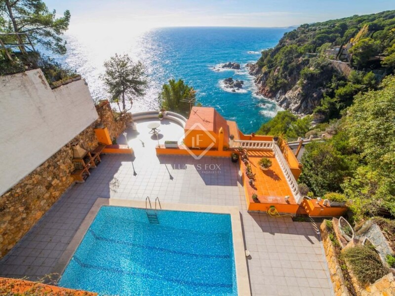 Costa Brava villa for sale with exceptional location on a clifftop overlooking the sea. Enviable setting in an urbanization with very few neighbours. The house was built in 1986 and has 5 bedrooms and 3 bathrooms, 1 garage for 1-2 cars, private pool and a plot of approximately 1,700m². In front of the house is a natural staircase that descends to a beautiful cove. The property boasts stunning sea views from almost every room of the house.
