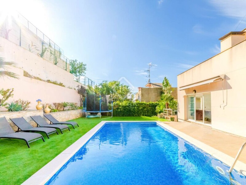 This modern and functional house, located in the peaceful area of Montgavina, offers views of the sea and mountains. It is distributed over three floors: two main floors plus a garage, set on a spacious plot that provides an ideal space for enjoying coastal living. On the ground floor, we find a garage with space for two cars and one exterior space, as well as access to the lift that connects to the upper floors. The first floor features a spacious entrance hall that leads to a bright living-dining room of approximately 50 m², with access to an exterior terrace that is perfect for enjoying the Mediterranean climate. The kitchen is fully equipped and renovated, also with access to the exterior. Additionally, there is a double bedroom that can serve as a guest room or for service staff, along with a complete bathroom. The second floor provides three double bedrooms, one of which is en suite. It also includes two complete bathrooms: one with a bathtub and the other with a shower. A small living-dining room on this floor is ideal for summer or as a multipurpose space, with access to the garden area next to the pool. The property is in good condition and ready to move in, with a southeast orientation that maximizes natural light. The ceramic flooring is easy to maintain, and the interior and exterior aluminium/Climalit carpentry ensures excellent insulation. Among the numerous extras this home offers are central air conditioning, heating, and a comprehensive security system with alarms, including fire and anti-theft alarms. It also features built-in wardrobes, a pantry, and a storage room. The private garden and pool, along with a barbecue area, allow for outdoor enjoyment, and there is also a solarium and a lookout point with unobstructed sea views. Contact us for more information and to schedule a visit.