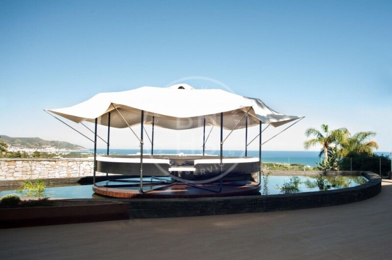 AQUAMARINA GRAND VILLA Berkshire Hathaway HomeServices presents to you this exquisite villa known as Aquamarina, located in the prestigious Can Girona residential area of Sitges. This fantastic property, designed by renowned architect Oriol Bohigas, offers an unparalleled lifestyle with panoramic sea views, an extensive plot of 2,489 square meters, and a total constructed area of 2,051 square meters. This villa embodies the epitome of luxury. Step into a world where sophistication meets comfort, where every detail is meticulously designed. Embrace technology with home automation, allowing you effortless control over lighting, climate, security, and entertainment. The property is divided into different independent spaces and environments, comprising 10 en-suite bedrooms, each designed as a private sanctuary. The spacious living and dining areas seamlessly merge with various outdoor garden areas and the pool zone, creating a harmonious connection between indoor and outdoor living. For culinary enthusiasts, the villa boasts not one but six fully equipped kitchens. This villa also features several dedicated spaces and facilities, including a spa, gym, cinema, a house service area, and multiple elegant guest accommodations, all designed to ensure the comfort and privacy of hosts and guests. The property is equipped with an elevator that connects all floors and a spacious garage providing parking for at least twelve cars. Your dream villa awaits you in Sitges, ready to offer a life of sophistication. Welcome to Aquamarina.