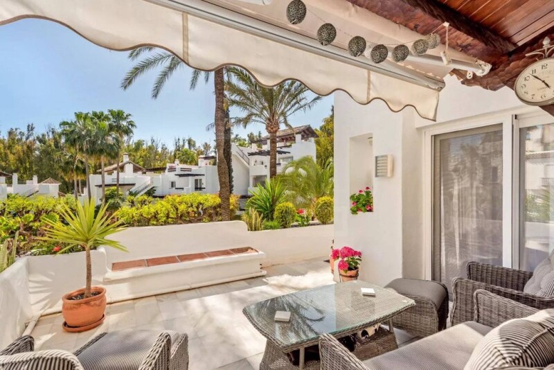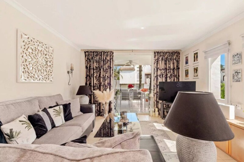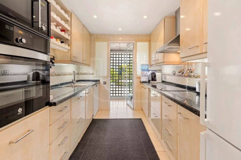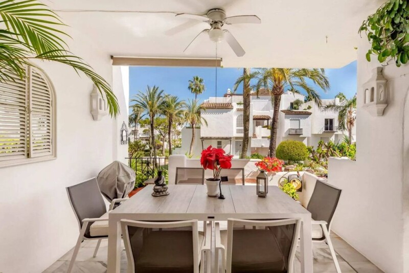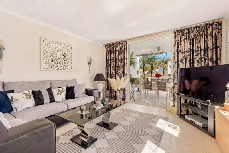 Beautiful apartment located in the prestigious Alcazaba Beach, a gem on the Estepona beachfront with lovely views of the pool, the gardens and the sea. Benefitting from tranquillity and accessibility, situated just a stone's throw away from Estepona's beautiful beaches and vibrant lifestyle. Close to essential amenities, golf courses, sports facilities, hospitals, supermarkets and schools. The beachside walk offers a delightful route to various restaurants and bars. The 101 sq.m corner apartment offering luxury, comfort and convenience maintained to the highest standards. The interior features a contemporary design with new modern style tiles and tasteful decor, creating a warm and inviting atmosphere. It comprises a large living room, fully fitted kitchen, utility room, 2 bedrooms and 2 bathrooms and 2 generously sized terraces. Other features include air conditioning, marble floors, double glazing, ample wardrobes and storage space. The Alcazaba Beach community is renowned for its 24-hour security and stunning landscaped gardens with facilities including, 2 swimming pools (one heated), 2 on-site restaurants, 3 paddle courts, 4 tennis courts, a football field, a gym and a sauna. The property is perfect as a holiday home or permanent residence.