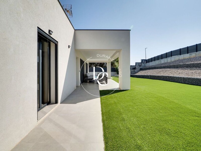 Discover this stunning single-story home of 192 square meters, with the option to add a second floor, located in the La Cogullada development in the municipality of Canyelles. Built on a 700 m² plot, the house offers unobstructed views of nature, surrounded by a garden with grass and a pool perfect for enjoying the outdoors. Upon entering, you are greeted by a spacious 30 m² porch that leads into the house. The entrance opens to a bright living-dining room with access and views of the garden and a fully equipped kitchen with high-end appliances. The jewel of the home is a spectacular master bedroom with an en-suite bathroom, a walk-in closet, and direct access to the garden, as well as a second double bedroom and a full bathroom with a shower. It also features a private 7 m² terrace and a laundry room. Originally, the home had three bedrooms, so with a simple modification by adding a wall, this third bedroom can be easily restored, adding even more versatility to the property if needed. On the lower floor, there is a spacious garage with room for two vehicles, motorcycles, and storage space. The property is equipped with home automation, a security system, an intercom, and Ethernet cable installation in all rooms. The windows and exterior doors have high-quality carpentry with thermal break, ensuring excellent thermal and acoustic insulation, and are also equipped with electric shutters. All materials used are of high quality and premium. Additionally, the aerothermal system for heating and ducted air conditioning ensures high energy efficiency and low maintenance costs. This home is the perfect balance of comfort, modernity, and sustainability in an unbeatable natural setting. Live where you deserve with Duran Carasso!.