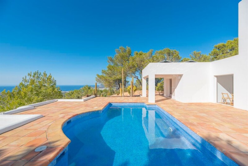 Spectacular property in the mountains above Benimussa offering 360o panoramic views to the sea This exceptional property, is situated in a stunning location in the picturesque mountain village of Benimussa and boasts spectacular panoramic views of the surrounding mountains and the sea. The property has been built respecting local traditions and using natural materials, but at the same time meets modern building requirements and enjoys complete privacy and tranquillity. The result is a solidly built house with a special ambience and character in a unique location in the middle of the protected Benimussa mountains and yet with the opportunity to be socially integrated in such a charming village as San Augustin. The property currently has three light-flooded bedrooms and two bathrooms, a spacious living room with a beautiful fireplace and an open kitchen with a fantastic dining area with spectacular sea views. In addition, the property offers great potential for expansion, which we will discuss in detail during a relaxed viewing appointment. The professional solar system and batteries, which are responsible for the power supply of the house, are of the latest generation. We also have water cisterns which provide the property with a sufficient water supply. You can also enjoy fantastic sunsets and fully immerse yourself in the special Ibiza charm. The neighboring village of San Jose is only a few minutes away by car and offers additional services such as supermarkets and a post office. The bays of the southwest, Cala Conta, Cala Cabassa and Cala Salada can be reached in less than 15 minutes by car. If you are looking for a stunning property with sea views and lots of privacy, do not hesitate to contact us for a viewing.