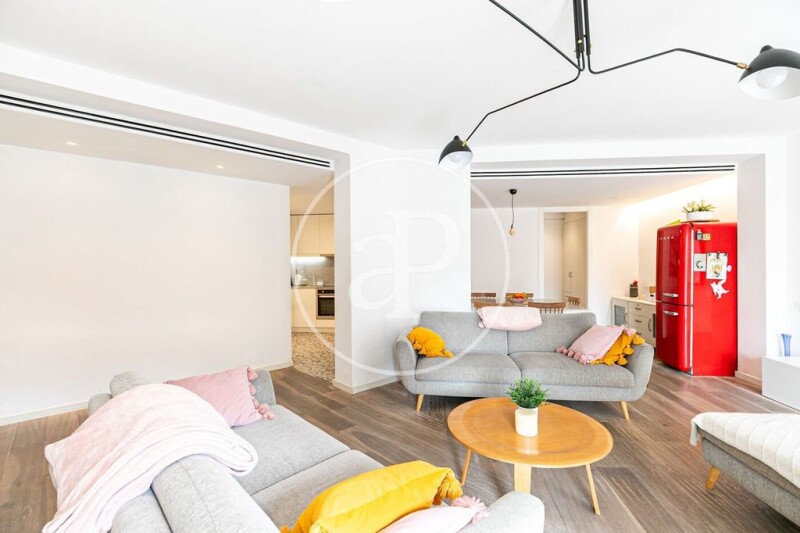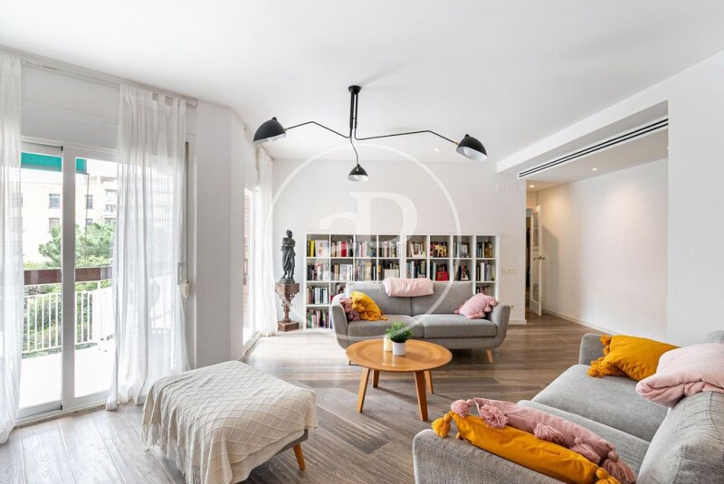 With an unbeatable location, in Travessera de les Corts next to Doctor Ignasi Barraquer square and just a few metres from Avenida Diagonal and Francesc Macià square, surrounded by all kinds of services and shops, we find this wonderful flat in a building in a perfect state of conservation with a lift and concierge service. This property was refurbished a few years ago by a renowned architecture studio, with a design that stands out for the high quality of the materials used, for its ample spaces and for its distribution that perfectly combines comfort and functionality. The flat has a surface area of 132sq m plus 13sq m of terrace. The entrance hall leads to the large living-dining room that is integrated with the fully equipped kitchen, which also includes a laundry room and an ironing area with built-in wardrobes. From this room, there is access to the terrace from which one can enjoy beautiful views of the communal garden area of the building. Thanks to its south-east orientation, the day area benefits from plenty of sun and natural light, as well as enjoying the tranquillity and silence of the island courtyard. The night area consists of four double bedrooms, all with fitted wardrobes. The master bedroom has an en-suite bathroom and another one with a gallery overlooking the inner courtyard of the building. Another bathroom with shower completes the property. For more comfort the flat has air conditioning by ducts and parquet floors. There is an option to rent a parking space in the same building. A great opportunity to acquire a unique property with ample spaces in one of the most sought-after areas of the city. .