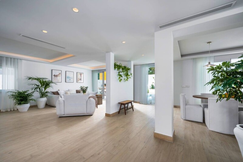 BlueLife Realty presents for sale this single-storey villa offering the epitome of modern, bohemian style in the heart of Nueva Andalucia. This 4-bedroom, 3-bathroom gem was just renovated in 2023 with high-quality materials and is furnished with custom pieces. Appliances come from the trusted Bosch brand. Upon entering, you're immediately welcomed into an open kitchen and living space that extends to a chic Ibiza-inspired terrace and garden. This private oasis offers a palette of outdoor experiences, dining areas with barbecue, relaxation zones with modern pool, all set against a backdrop of lush palms and greenery. The first guest bedroom, as well as the master bedroom with en-suite bathroom, feature large sliding doors that open onto this exquisite garden. Two further bedrooms complete the villa, sharing a separate bathroom. This house is a true hidden gem thanks to a private road leading to the entrance of the house with reserved parking. Ideally located, the property is surrounded by stores and restaurants and is not far from Puerto Banus, the beach and golf courses. The privileged location of this property makes it ideal for year-round rental. The villa allows for the construction of a second level, offering future expansion possibilities. Opportunity waiting to be seized!.