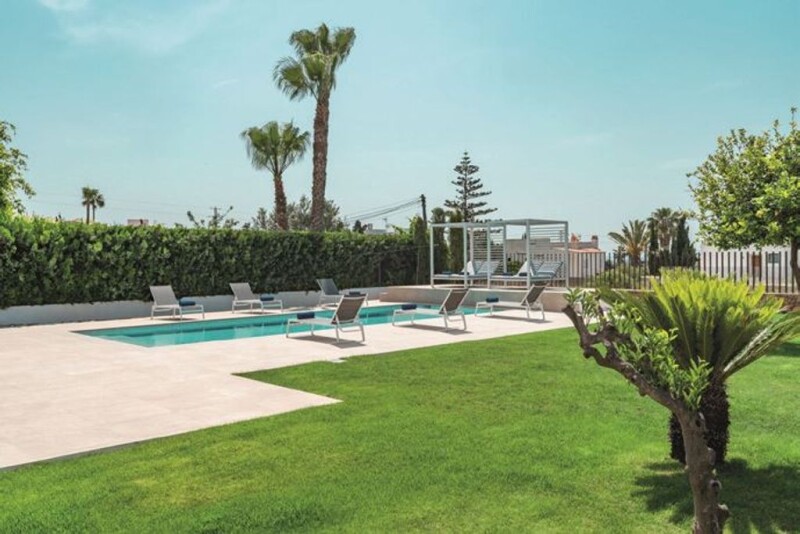 Wonderful villa Located in Playa den Bossa for sale This newly built Ibizan-style villa is ideally situated in the southern part of the island, in close proximity to the airport, pristine beaches, and the vibrant Playa den Bossa, just a short drive away. The expansive and open-plan living area seamlessly integrates a dining space and kitchen, creating a spacious and welcoming atmosphere. The open-plan layout extends to a generous terrace, offering sweeping sea views of Ses Salines and Formentera. Outdoor amenities include a covered terrace equipped with a 10-place table, kitchen, barbecue, and wood oven. The property is complemented by a large swimming pool, a meticulously landscaped Mediterranean garden, and a roof terrace that boasts spectacular sea views. Key features of the villa include a private pool, air conditioning, smart TV, and garden furniture. The well-appointed kitchen is equipped with a barbecue, fenced plot, kettle, hairdryer, iron, internet access (Wi-Fi), refrigerator, freezer, wine cellar, washing machine, dryer, dishwasher, coffee machine, toaster, crockery, and utensils. Towels and bedding are provided, and the property offers private parking for convenience. Immerse yourself in the allure of this idyllic haven, combining modern amenities with the charm of Ibiza's traditional architecture.
