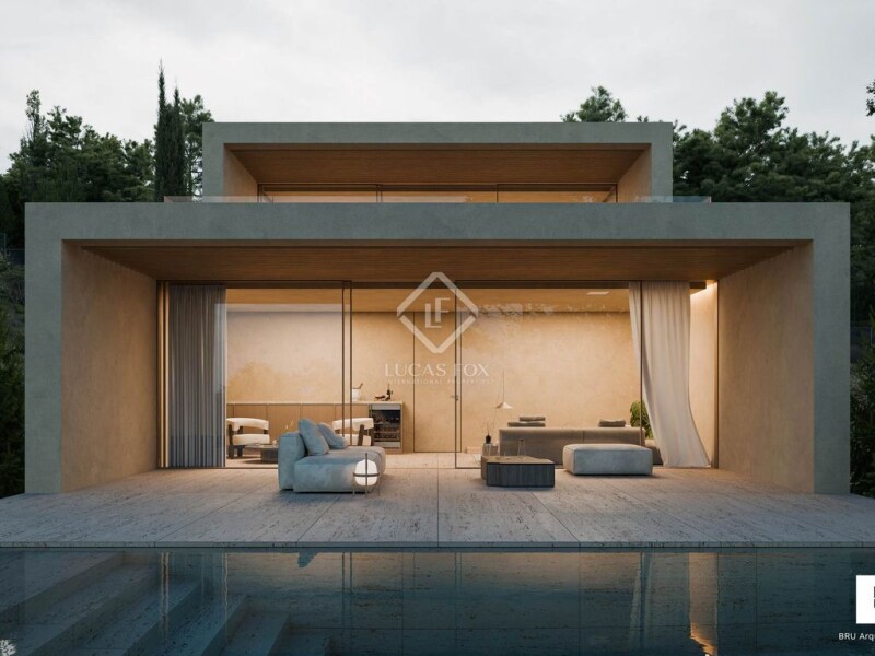 Lucas Fox presents an extraordinary villa under construction, located in a natural setting that impeccably fuses indoor and outdoor spaces, providing an unparalleled living experience. The property, which sits on a plot of 806 m², is distributed over two well-defined floors. On the upper floor , with a useful area of 80 m², is the main access , which includes a large parking space for two vehicles. Upon entering, an elegant lobby leads to a spectacular open-plan space of 70 m², where the living room, open kitchen and dining room are integrated in perfect harmony. The large floor-to-ceiling windows flood every corner with natural light and connect to a large 25 m² terrace with a pergola and a 34 m² open terrace, ideal for enjoying the surroundings. This floor is completed by a guest toilet and an elegant staircase leading to the lower floor . On the ground floor, with a useful area of 119 m², the night area is located. Here there are 4 bedrooms. One of them is an en-suite room, with its own bathroom and dressing room. The remaining 3 bedrooms share a full bathroom . This floor also has a large 29 m² studio that opens onto a second terrace with a 25 m² pergola and an open terrace of 27 m², from which you can enjoy views of the pool, an idyllic corner for relaxation. The floor is completed with a laundry room room and a machine room. The villa stands out for its high-end finishes and technologies: aerothermics heating, air conditioning, LED lighting, top-quality plumbing installations, water softener, home automation system for temperature control, aluminium enclosures with thermal bridge break and interior ventilation system. The floors are made of microcement or large-format porcelain on the inside and paving stones on the exterior, together with other carefully selected details, giving this house a unique and sustainable character, with an A energy rating. The villa will be delivered with a landscaped garden , with native plants that beautify the surroundings and reinforce its integration with nature. For more information, please do not hesitate to contact us. We will be happy to provide you with all the details about this magnificent new build.