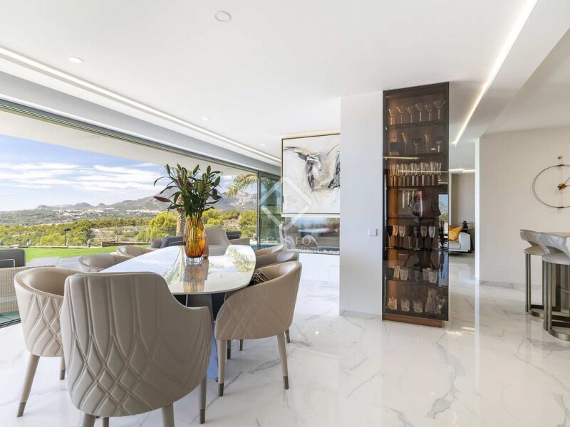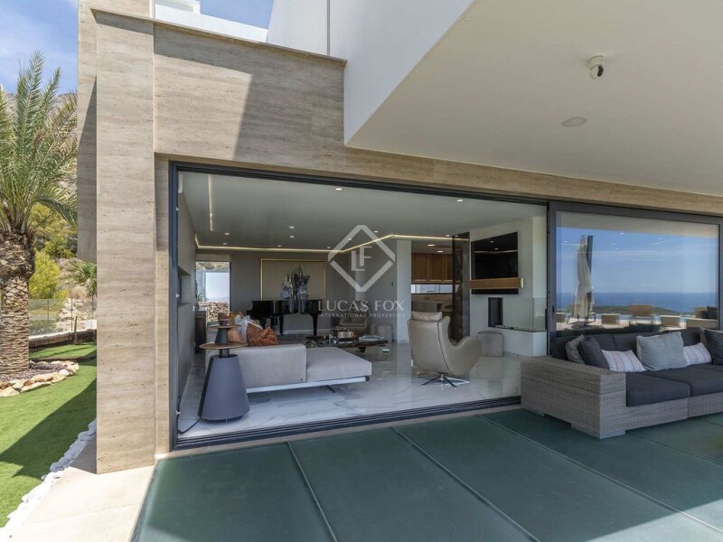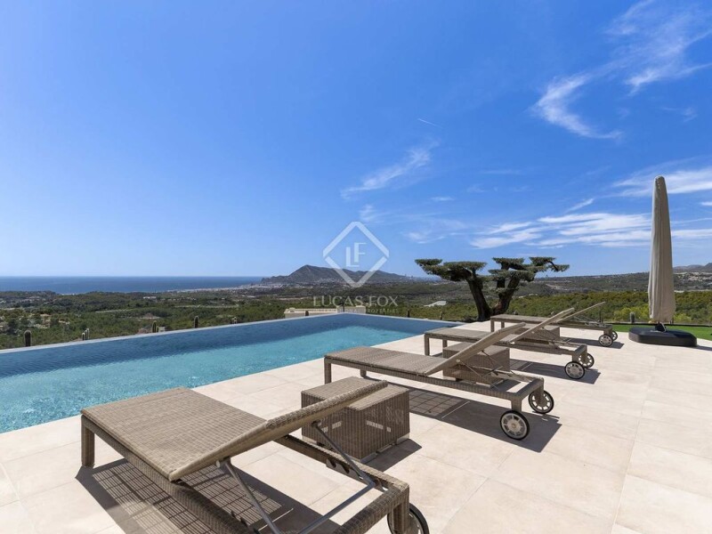 This magnificent property, situated in the residential area of Paradiso lives up to its name perfectly. It is set above a pristine natural bay of Altea in Costa Blanca with unique uninterrupted views of the coastline and the mountains. Built at the highest point of the residential area of Altea la Vieja on 1,880 sqm of land, this villa of 920 sqm with 6 bedrooms and 6 bathrooms, home cinema, internal pool and gym area possesses a unique, serene atmosphere within a short drive from the city centre of Altea and the beach. Surrounded by a beautifully landscaped garden with a large pool, palm trees and original sculptures, this is perfect for serene afternoons or grandiose receptions. The modern and efficient designs of this luxury architecture have inspired the designer to create lounges that extend into the garden, terraces that continue into the house. That is the magic of this property: its ability to extend the outdoor spaces into comfortable interiors, capturing that breeze that sneaks in to create natural environments inside and cosy spaces outside. The exquisite surroundings created by precious materials, natural stone, light wood or glass will carry you away to an unfettered world of luxury and exceed your expectations. The foundations, the retaining walls of reinforced concrete and the thermo acoustic insulation are made with Baupanel Building system famous also to be resistant to the fire and hurricanes. The villa bathed in light consists of 2 levels with panoramic sea views and a basement, all connected by an internal lift. The ground floor hosts the dining room and the kitchen area, the main living room with a fire place which open to the pool and the covered terrace, an outdoor lounge and the garden with a fantastic sea view. At the same level you will find an office, the summer kitchen and a large closed garage. On the upper floor, you will find a large master bedroom opened on a large terrace with sea view, a walking wardrobe, a huge bathroom with a bath and a walking shower facing the mountain. This level offers an open office facing the sea, 4 others bedrooms and 3 bathrooms. The lower floor features a home cinema room, a billiard room with an external patio, an indoor heated swimming pool with jacuzzi, a relaxation and gym area and a sauna. It also comprises a technical room. The final finish is elegant with a high standard of materials and a high-quality craftsmanship. This new property will offer you the last technological advances in terms of thermal, acoustic and airtightness performance. For added comfort, the villa is equipped with an air conditioning system that uses aerothermal energy and underfloor heating via an air-to-water system. Installation of interior home automation, a security alarm system. This is the perfect villa to enjoy and relax in Altea in Costa Blanca. This home is not just a residence but a statement of luxurious living, promising a lifestyle of comfort and exclusivity. For more information, please contact Lucas Fox Altea on 0034 965 208 331.