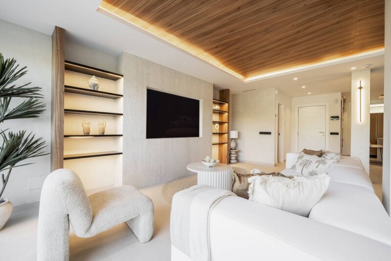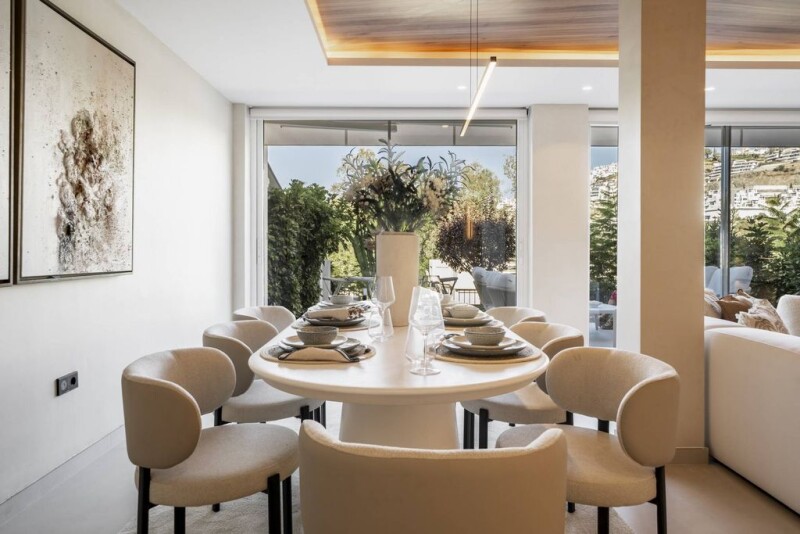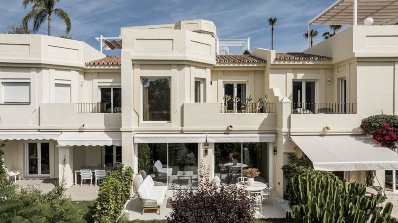 Modern renovated townhouse with panoramic sea, mountain, and golf views in La Quinta, Benahavis Nestled in the prestigious area of La Quinta, this beautifully renovated townhouse offers a unique blend of modern design and scenic views. Overlooking the serene mountains, Mediterranean Sea, and lush golf courses, this home is situated in a gated community that boasts two swimming pools and landscaped gardens, making it the ideal residence for those seeking both comfort and privacy. This townhouse has been completely refurbished to the highest standard, featuring a sleek and contemporary layout. As you enter the ground floor, you are greeted by an open-plan living and dining area that seamlessly connects to a spacious terrace and private garden. The large, floor-to-ceiling glass doors allow natural light to flood the space, enhancing the sense of openness and tranquility. The fully fitted kitchen is equipped with state-of-the-art Smeg appliances, premium finishes, and a Domotica system for modern convenience. Additionally, the property is fully furnished, offering a move-in-ready opportunity for buyers. On the first floor, the sleeping area is thoughtfully arranged, comprising three well-appointed bedrooms. The master bedroom serves as a luxurious retreat, complete with a walk-in closet, a large double bed, and an ensuite bathroom. The two additional bedrooms share a bathroom and each opens onto a private terrace that offers stunning panoramic views, perfect for relaxing in the Mediterranean breeze. The crown jewel of this property is the rooftop terrace, a breathtaking space that offers 360-degree views of the surrounding mountains and sea. Whether you’re hosting a gathering or enjoying a peaceful evening under the stars, this terrace is ideal for entertainment and taking in La Quinta’s magnificent sunsets. La Quinta is known for its world-class golf courses, making this location particularly desirable for golf enthusiasts. The townhouse's proximity to nearby amenities, such as fine dining, shopping, and international schools, adds to the appeal, while its secure gated community ensures peace of mind. With easy access to both Marbella and Puerto Banús, residents can enjoy the best of Costa del Sol living while retreating to a tranquil and private haven. Key features of the property: - Prime location in a secure, gated community - Panoramic views of mountains, sea, and golf courses - Fully renovated with high-end finishes and a modern layout - Spacious living area with floor-to-ceiling glass doors and private garden - 80 m² terrace, perfect for outdoor living and entertainment - Three bedrooms, including a master suite with ensuite bathroom and walk-in closet - Domotica system for enhanced comfort and convenience - Rooftop terrace with 360-degree views - Two swimming pools and lush gardens within the community - Close proximity to golf courses, restaurants, and other local amenities This property represents an exceptional opportunity to own a turnkey townhouse in one of the most sought-after locations in La Quinta, blending modern luxury with natural beauty.